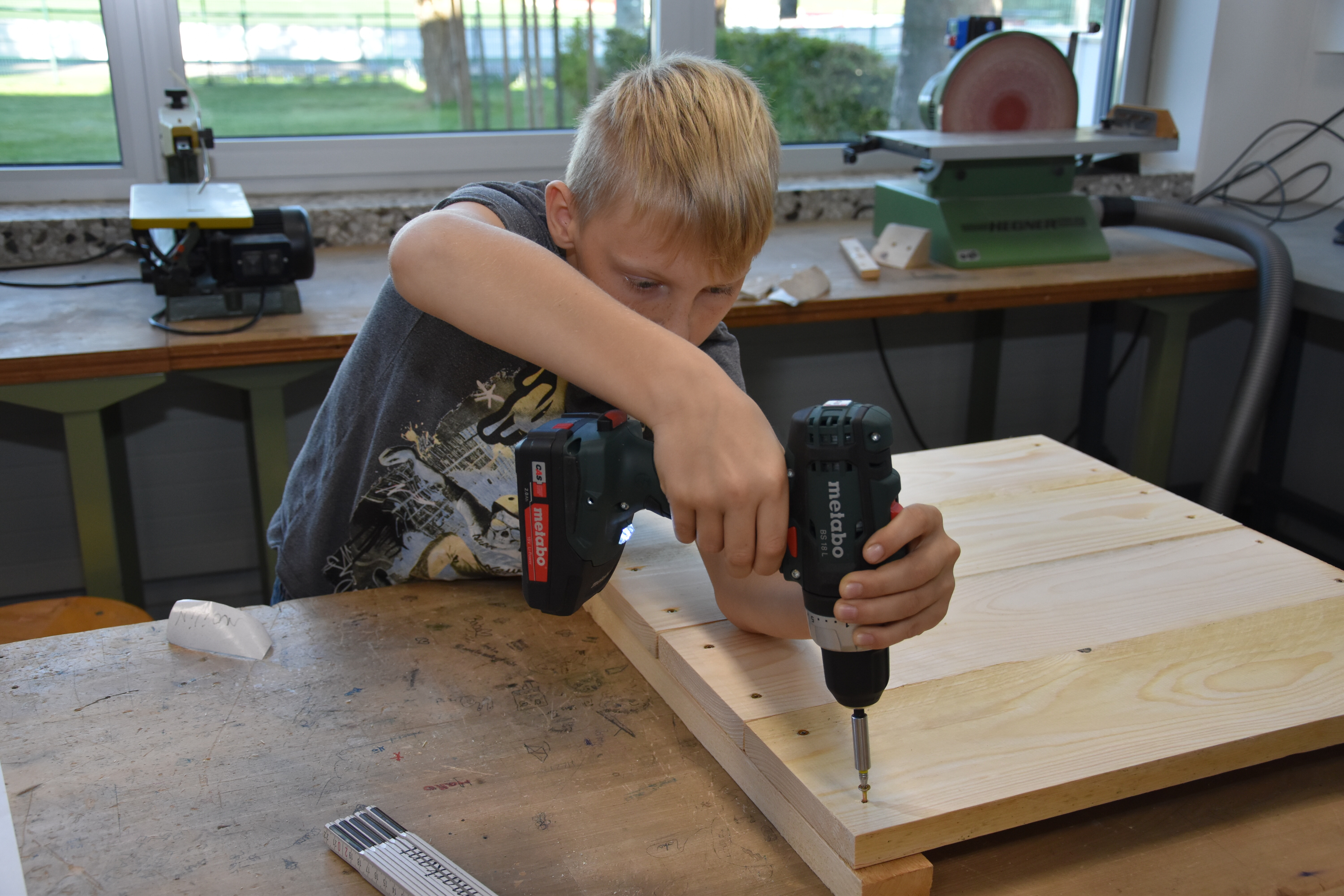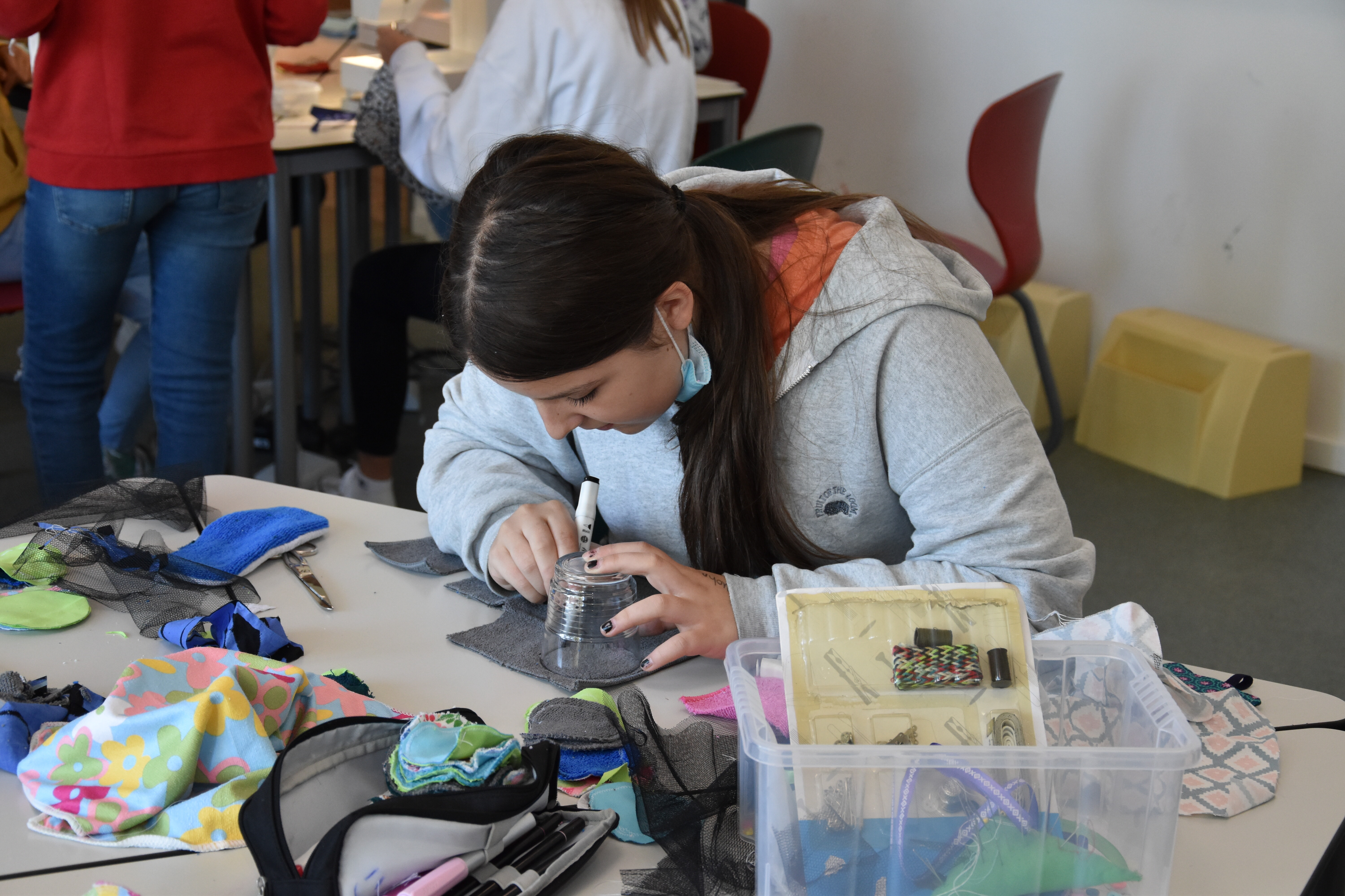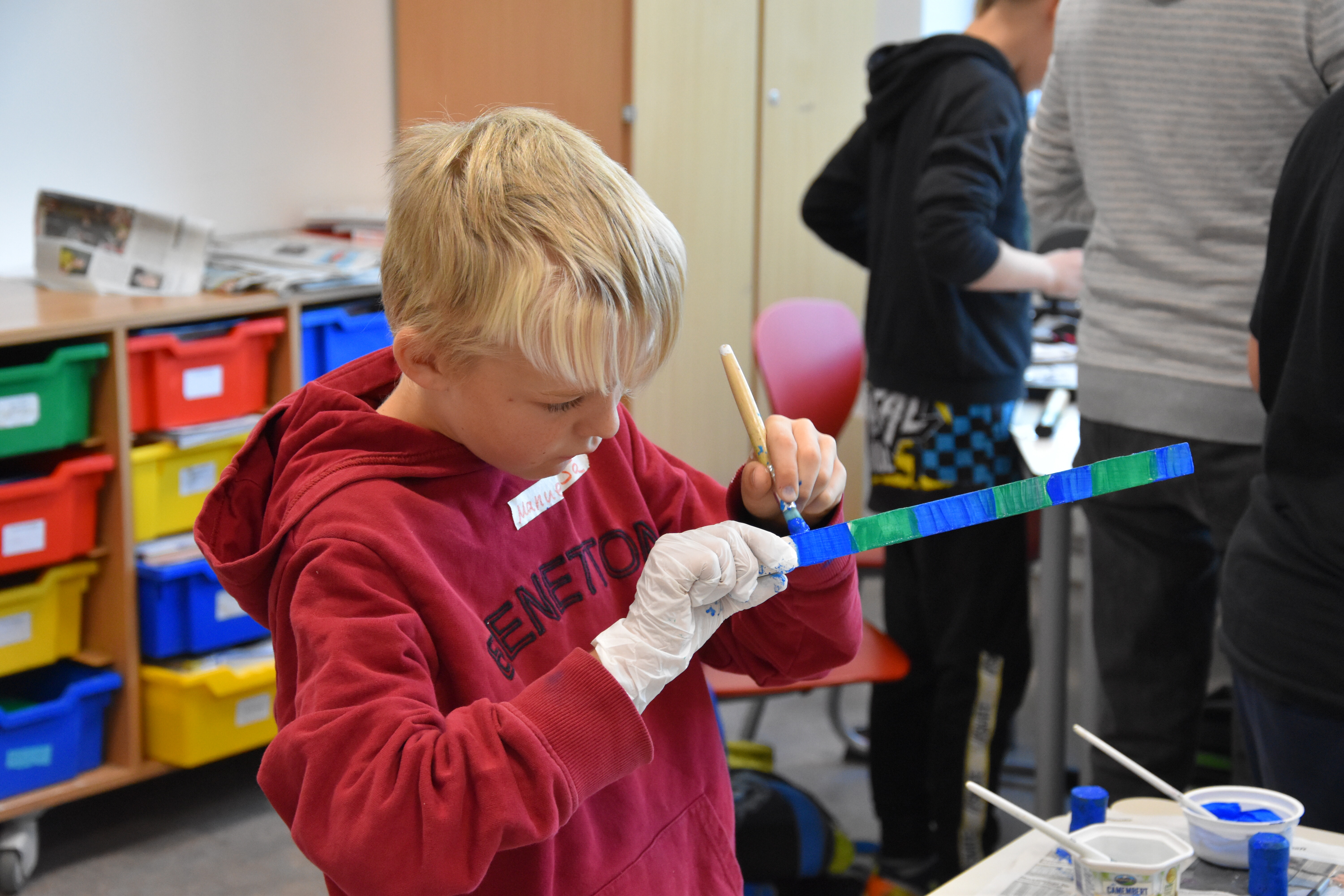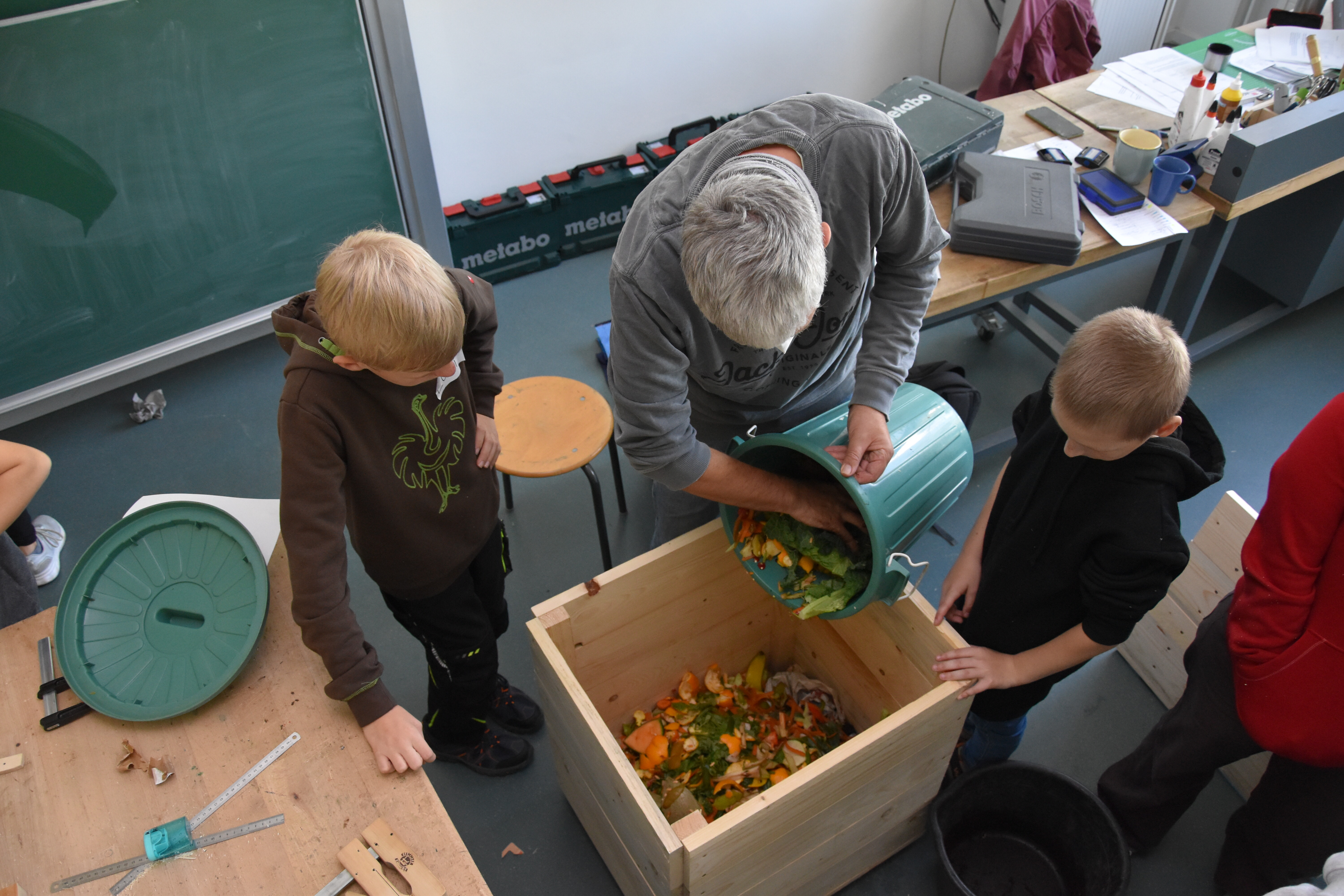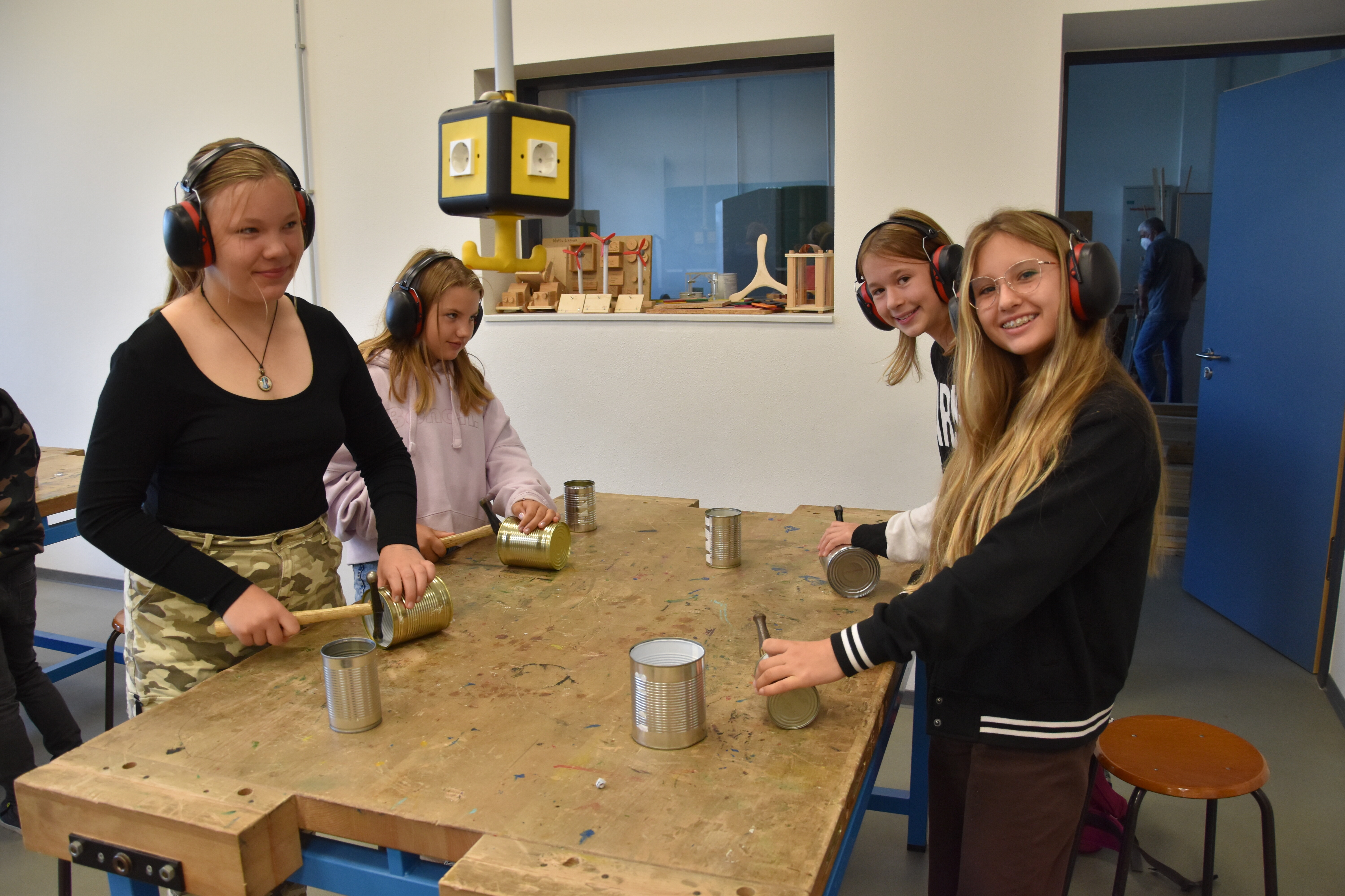 Insgesamt standen 15 Workshops für die Schülerinnen und Schüler der Jahrgänge 5 bis 8 bereit. Die Lehrerinnen und Lehrer der Sekundarschule hatten sich im Vorhinein ein vielfältiges Programm ausgedacht, in dem sowohl die praktischen als auch die theoretischen Fähigkeiten der Schüler*innen gefordert waren. Kreativität wurde den ganzen Vormittag lang großgeschrieben, sei es beim Basteln von Instrumenten aus Müll oder Obstnetzen aus Stoffresten, dem Upcyceln von alten Konservendosen zu lustigen Deko-Bienen oder dem Gestalten von Slogans für die Schulmülltonnen. Praktische Tipps für ein nachhaltiges Leben gab es auch in vielseitiger Form: Der Schulgarten ist jetzt um eine Wurmkiste reicher, in der Küchenabfälle auf ganz natürliche Art und Weise zu Kompost und schließlich nährstoffreicher Blumenerde wird. Schüler*innen, die diesen Workshop besuchten, kennen jetzt übrigens auch den Unterschied zwischen Regen- und Kompostwürmern.