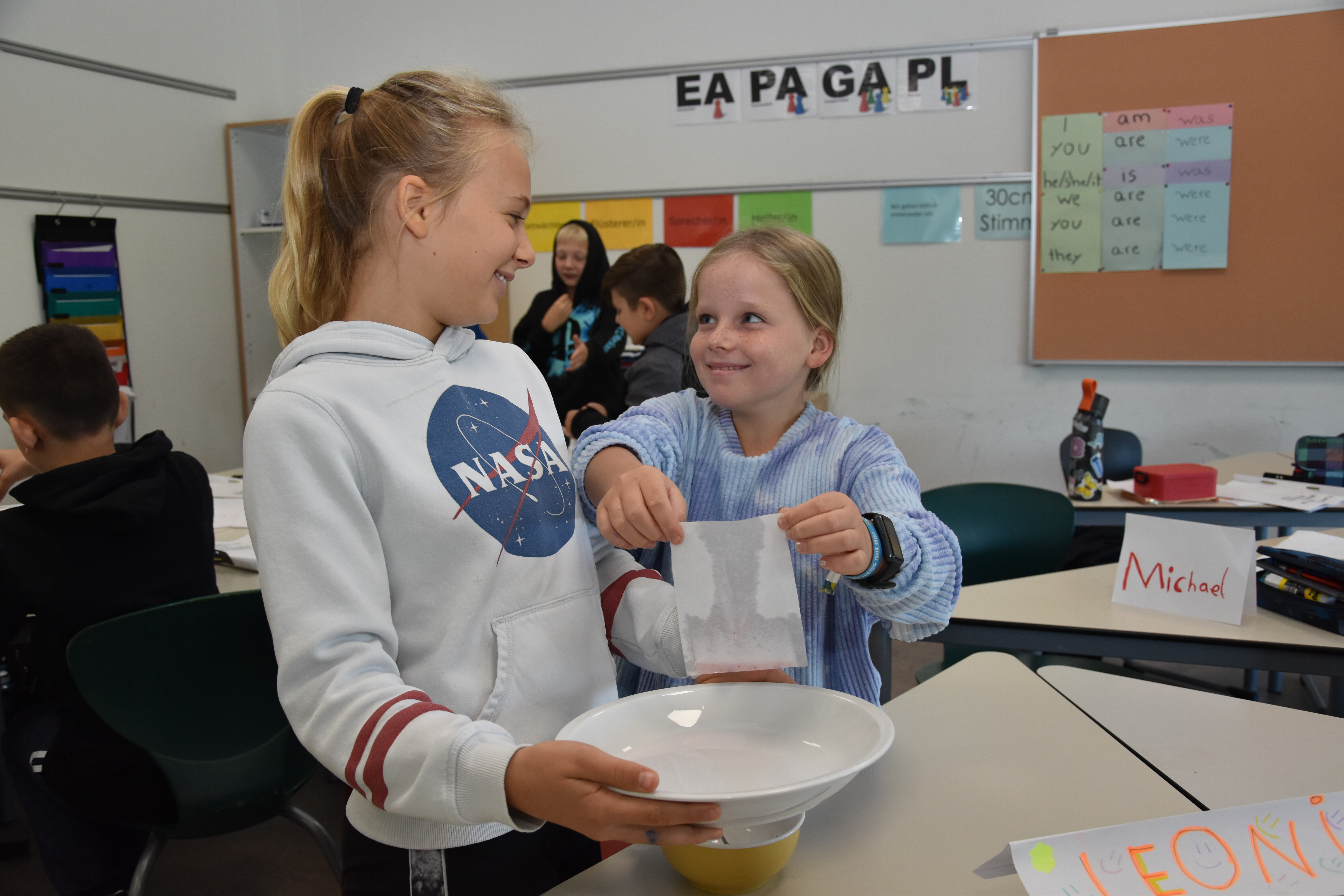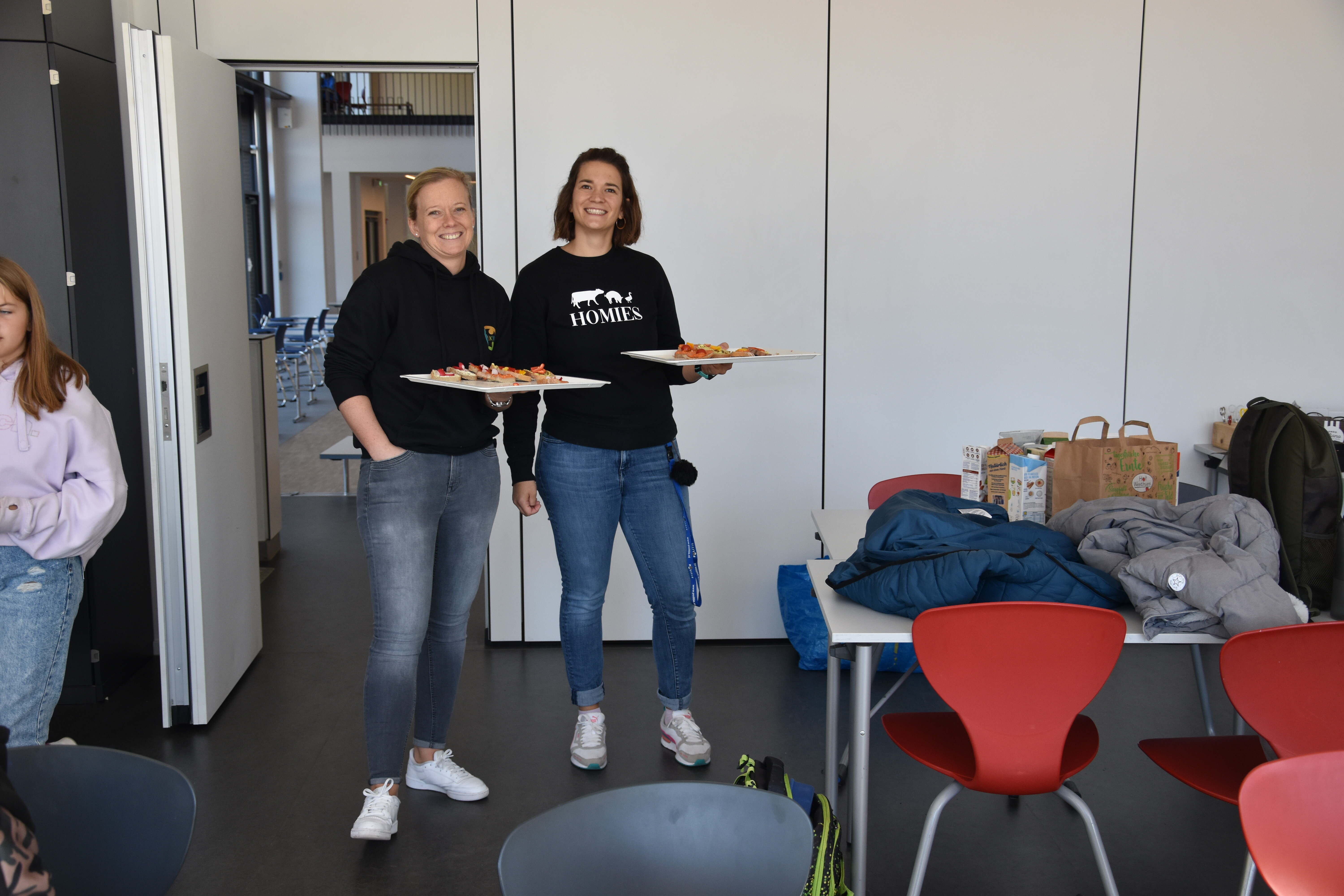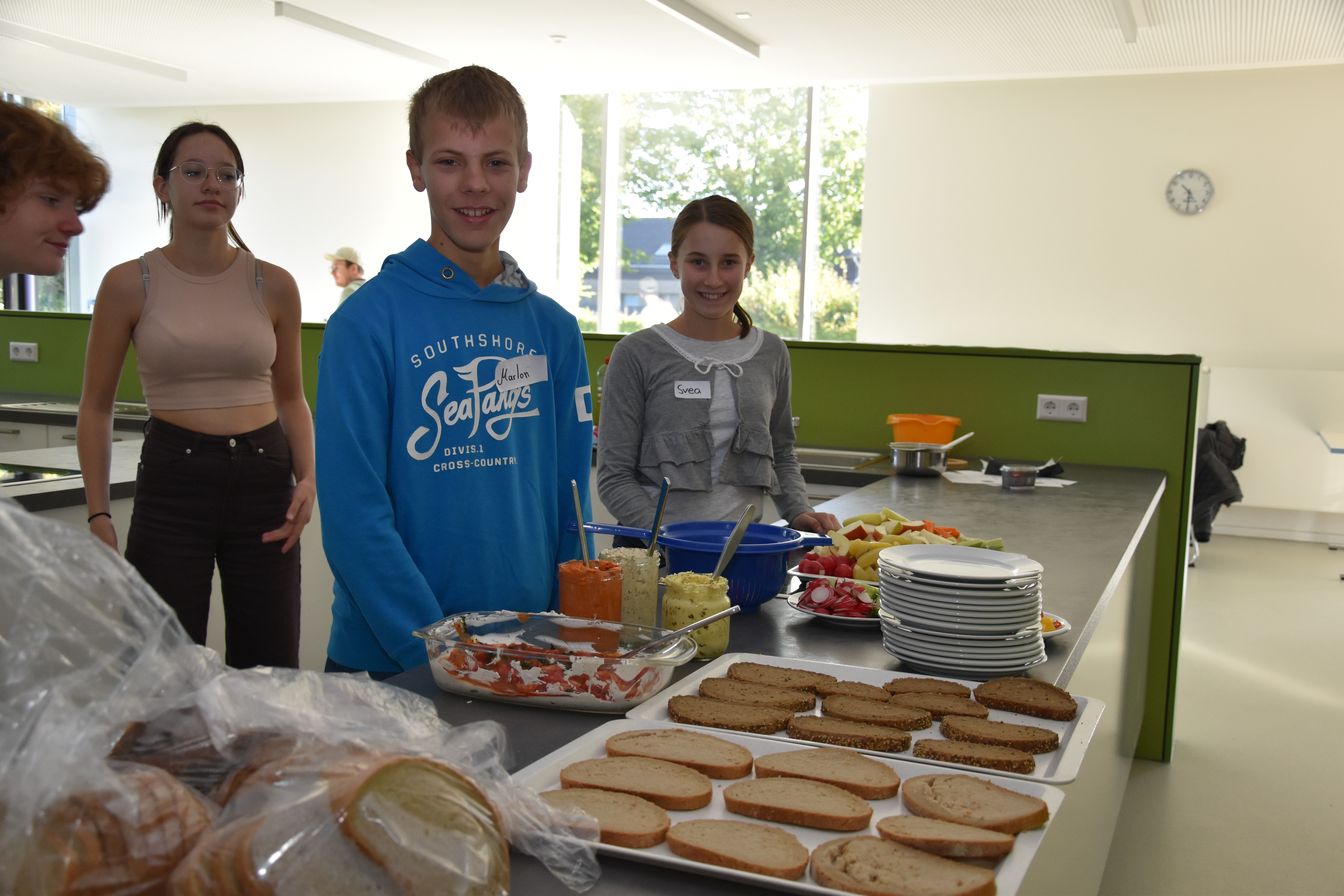 Für das leibliche Wohl der menschlichen Projektteilnehmer war auch gesorgt: Aus einer Gemüse- und Obstkiste, die von einem ortsansässigen Gemüsehof gestiftet wurde, schufen Schüler*innen unter Anleitung leckere vegane und nachhaltige Brotaufstriche. Die Menge reichte sogar noch, um im Anschluss an die eigene Verköstigung umliegende Workshops mit Kostproben zu versorgen. Andere Workshops hatten hingegen einen eher informativen Charakter. Sie informierten über Plastikmüll im Meer, die Verschwendung von Lebensmitteln in unserem Alltag oder boten kleine naturwissenschaftliche Experimente zum Nachweis von Mikroplastik in unserer Zahnpaste und Kosmetika.