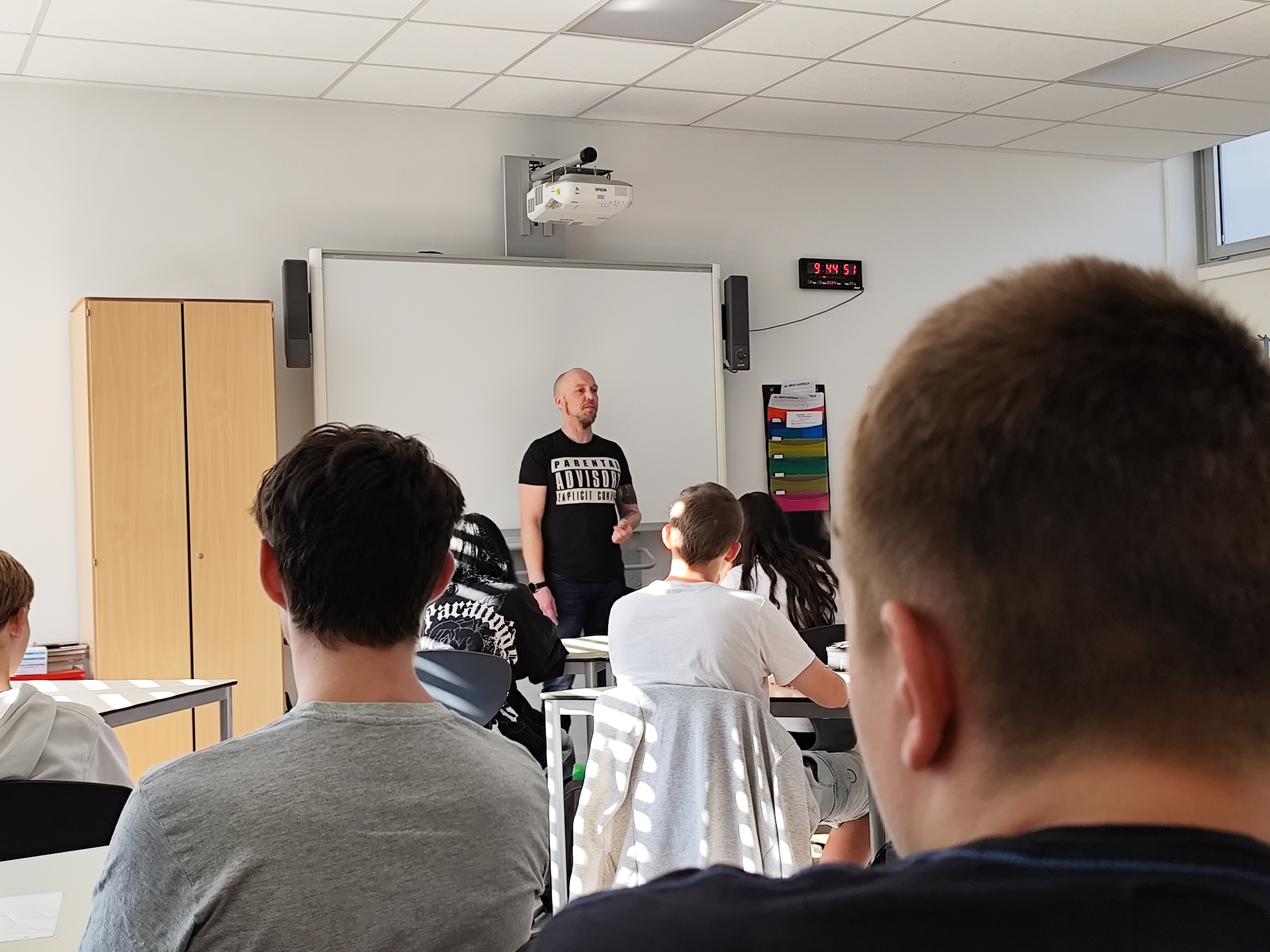 Am 02.09.2024 und 03.09.2024 besuchte Timo Schüsseler die Sekundarschule Wadersloh und hielt in den neunten Klassen je einen Vortrag, in dem er von seinem Leben berichtete. Der trockene Alkoholiker schilderte dabei nicht nur seinen Suchtverlauf sehr klar und eindrucksvoll, sondern zog dabei immer wieder Parallelen zu der Lebenswelt der Schülerinnen und Schüler.