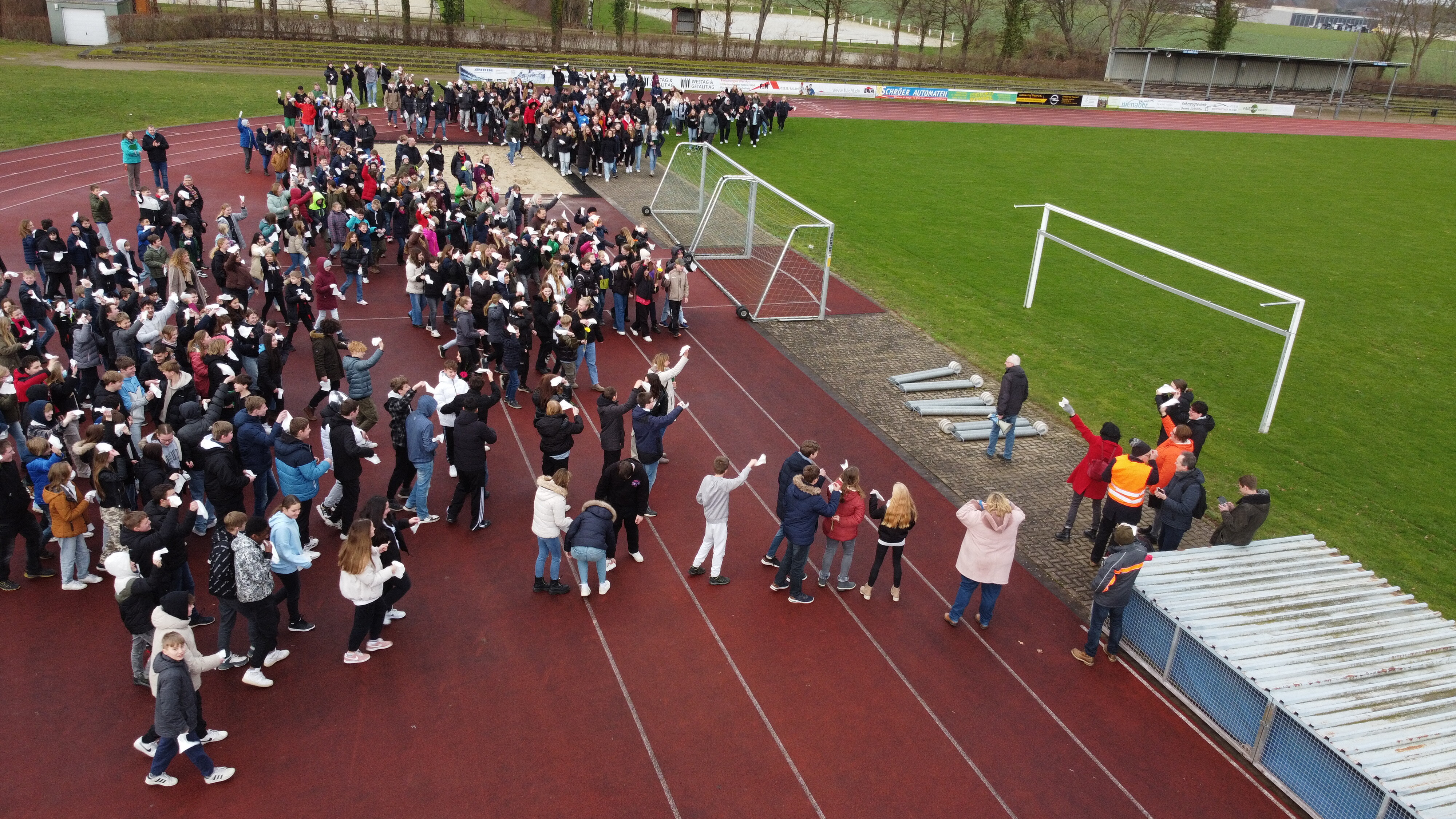 Das Kollegium wusste, dass es einen Probealarm geben würden, die SchülerInnen wussten nur, dass wir auf ein Signal hin alle zum Sportplatz kommen sollen.