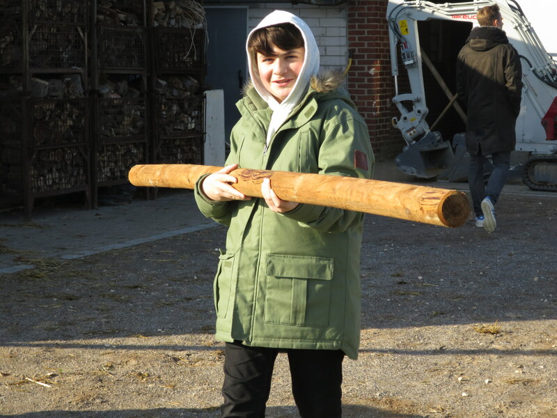 Die Schülerinnen und Schüler schnappten sich "ihren" Baum und suchten sich ein Pflanzloch aus. Dann begann der anstrengende Teil der Arbeit. Die Erde musste zurück ins Loch geschüppt werden und Herr Eilhard war damit beschäftigt die Holzpfähle mit der 16kg schweren Pfahlramme in den Boden zu treiben. Nach ca. 2 Stunden waren alle Bäume in der Erde. In der Zwischenzeit waren auch die Eltern der Klasse 7b an der neu entstanden Streuobstwiese angekommen und sorgten mit Kuchen, Süßigkeiten, Kinderpunsch und Würstchen vom Grill für eine willkommene Stärkung.