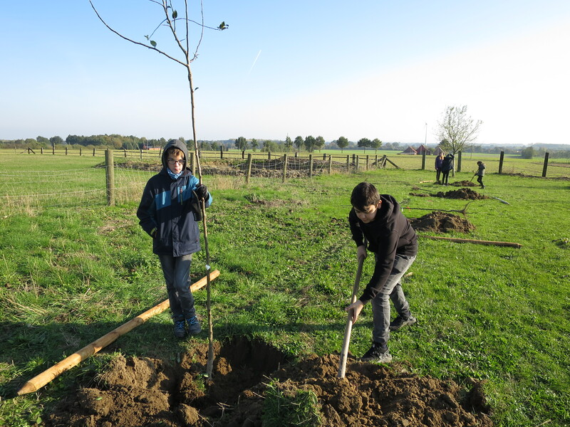 Die Klasse 7b hat sich auf diese Aktion vorbereitet. Die GL-Stunden wurden in dieser Woche für die Erstellung von Steckbriefen und dem Entwerfen von Schildern für den jeweiligen Baum genutzt. Es sollten nämlich fast 20 verschiedene Sorten gepflanzt werden: Apfel-, Birnen-, Kirsch- und Pflaumenbäume.