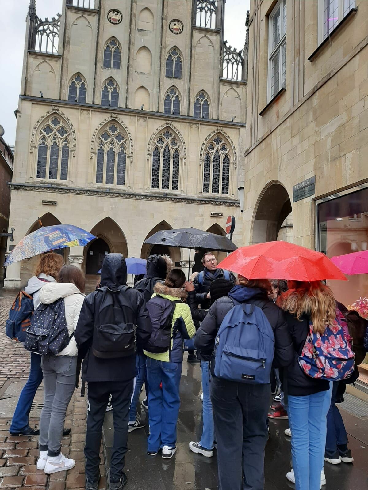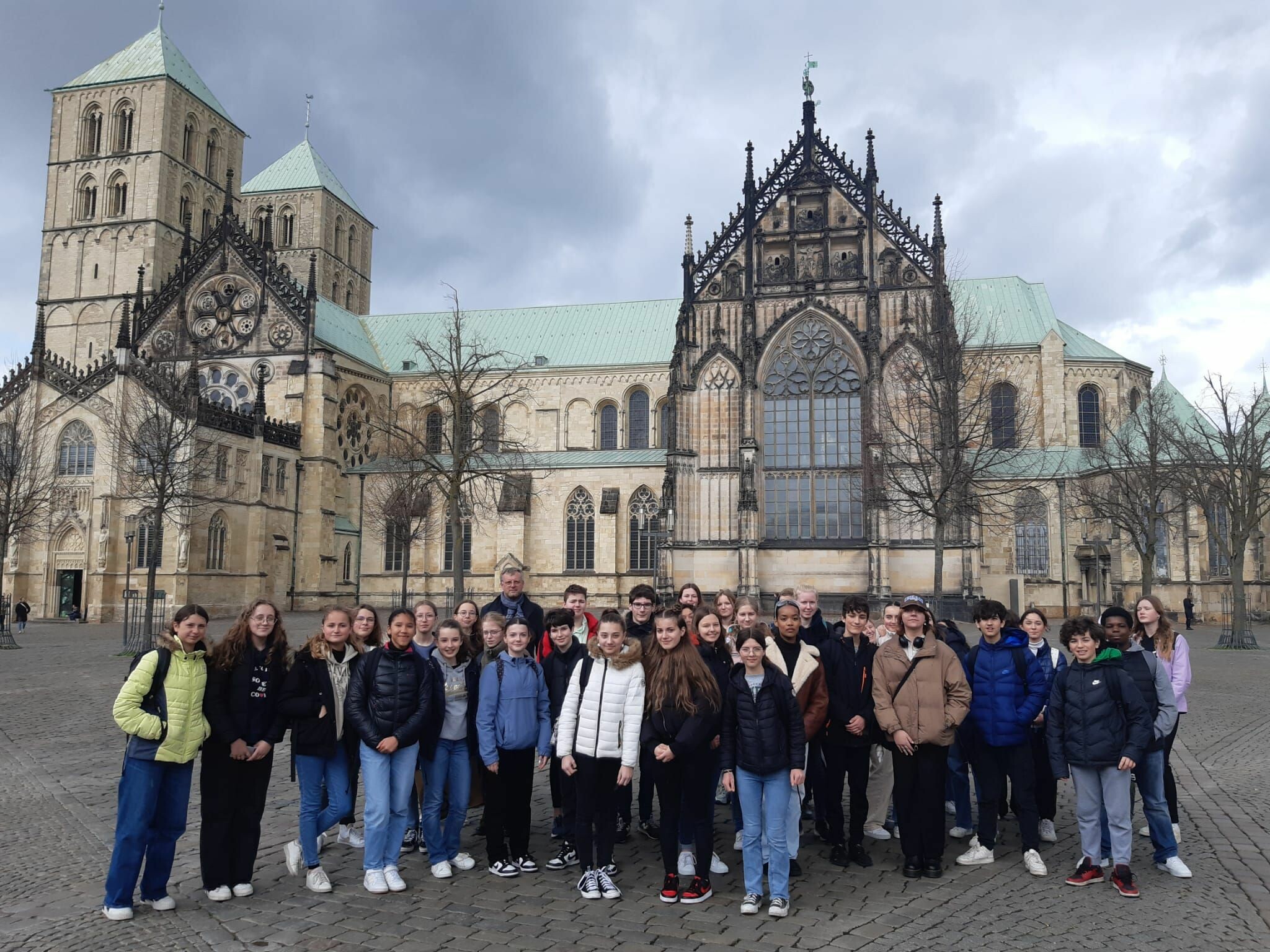 An diesem letzten Tag sind wir alle zusammen nach Münster gefahren, um eine Stadtführung zu machen. Es gab zwei Führungen, eine auf Deutsch und eine auf Französisch. Dies war sehr spannend, aber leider hat das Wetter nicht ganz so mitgespielt. Anfangs hat es heftig geregnet. Nach der Führung waren wir dann noch im Friedenssaal und hatten eine Stunde Freizeit. Zum Glück ließ sich genau jetzt die Sonne blicken! Wir kamen passend um 15.05 Uhr an der Schule wieder an und haben den restlichen Tag wieder mit den Familien verbracht.