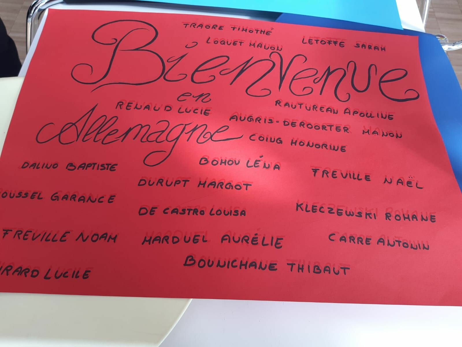 Unsere Austauschschüler*innen aus Margny-lès-Compiègne (Frankreich) kamen unerwartet früh an. Eigentlich sollten sie erst zwischen 16.00-17.00 Uhr ankommen, aber sie kamen schon um 15.15 Uhr an. Wir warteten mit unseren Familien schon aufgeregt auf unsere Austauschschüler*innen und wir verbrachten mit ihnen den restlichen Abend.