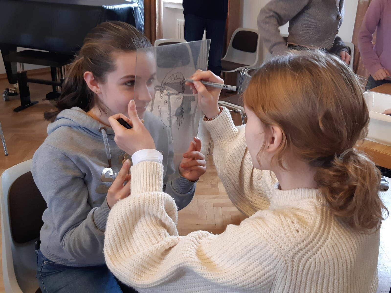 Dienstag morgen haben wir den Franzosen die Schule gezeigt und sie waren mit uns im Unterricht. Ihnen ist aufgefallen, dass der Unterricht hier in Deutschland ganz anders gestaltet ist. Am Dienstag Nachmittag hat jeder was mit seinen Familien unternommen. Nach dem Abendessen sind Margot und ich (Emilia) rüber gegangen zu Merle und wir haben zu viert einen Film geschaut auf deutsch mit französischem Untertitel.