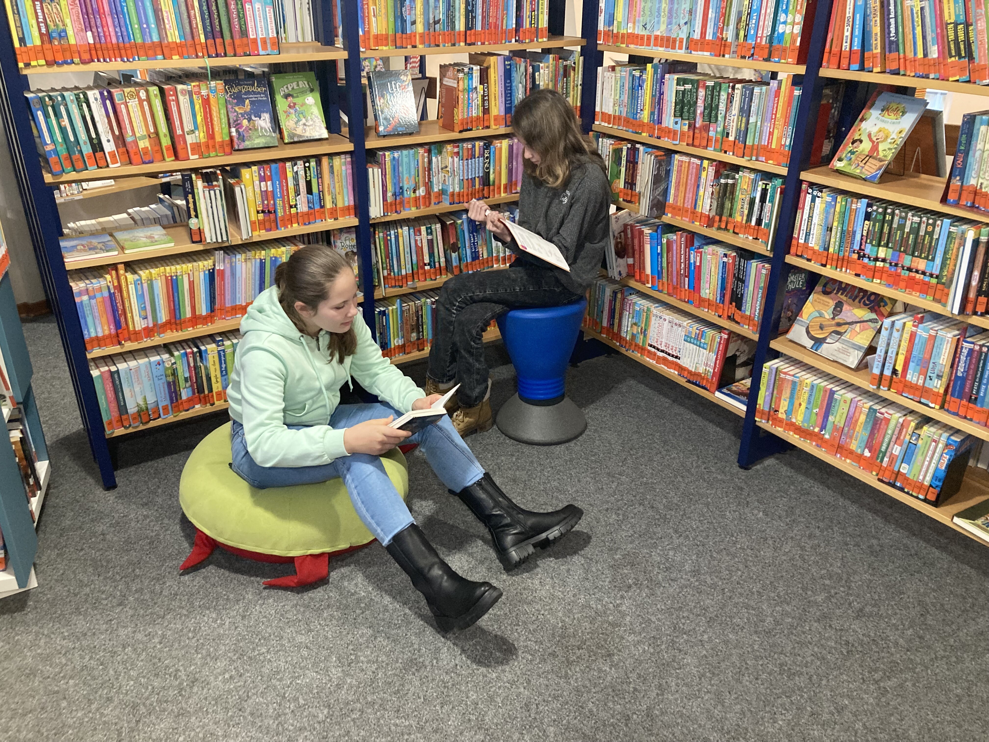 Neben dem Ausprobieren der Roboter konnten die Schülerinnen und Schüler sich frei in der Bücherei bewegen und in die Bücherwelten eintauchen.