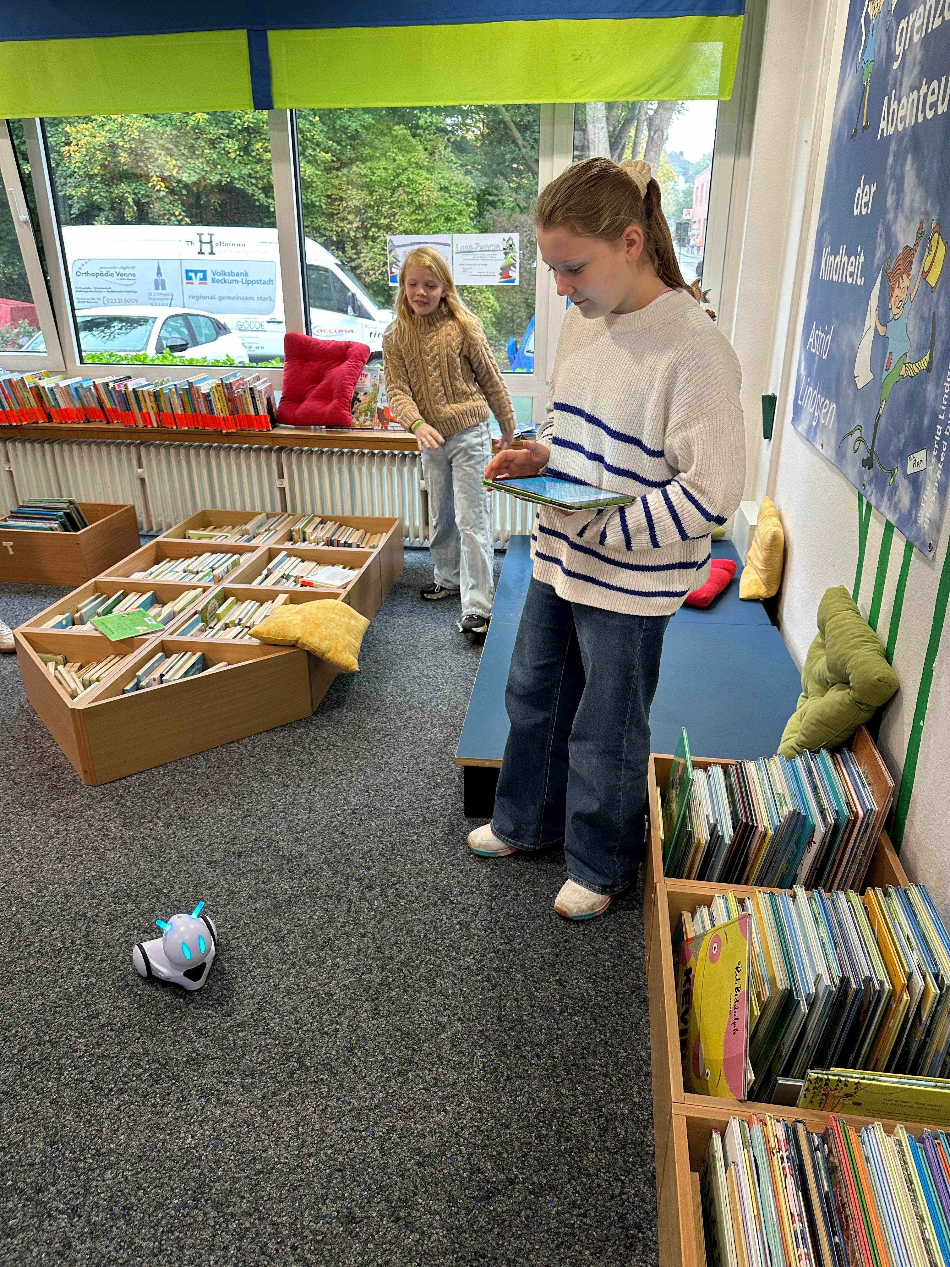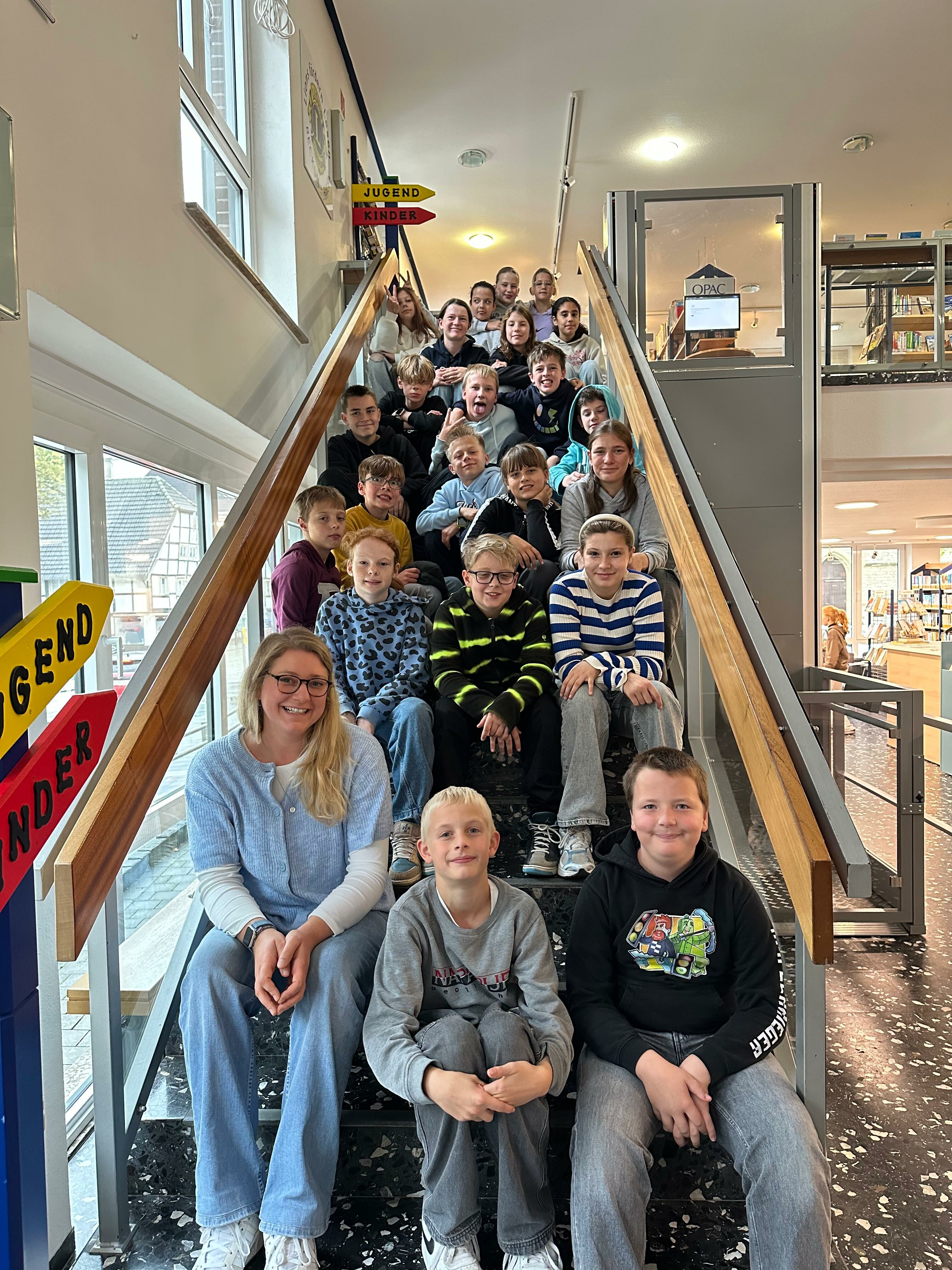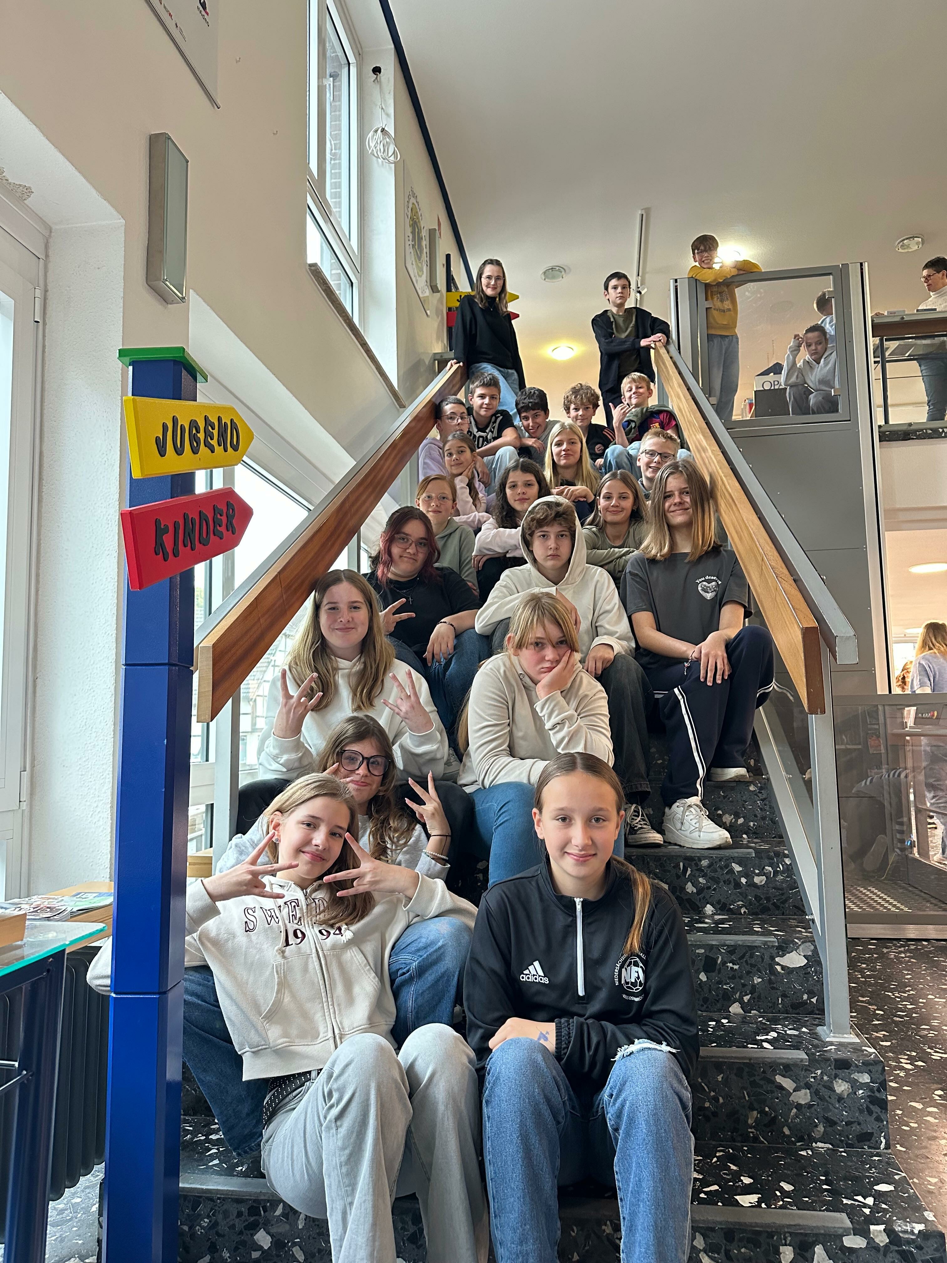 Der 6. Jahrgang der Sekundarschule Wadersloh bereitet sich im Moment auf den jährlich stattfindenden Vorlesewettbewerb vor. Neben den Vorbereitungen im Deutschunterricht besuchten die Schülerinnen und Schüler am 6. Oktober die Bücherei in Beckum. Dort beschäftigten sie sich mit unterschiedlichen Programmpunkten. So erkundeten sie in Teams die Bücherei mit ihren unterschiedlichen Abteilungen und programmierten Roboter.