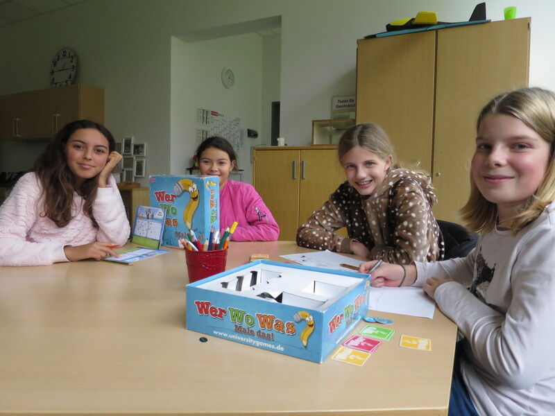 In der Mittagspause bietet Frau Kühl, mit Unterstützung von Schülern aus höheren Jahrgängen ein Bastelangebot und einen Leseclub an.