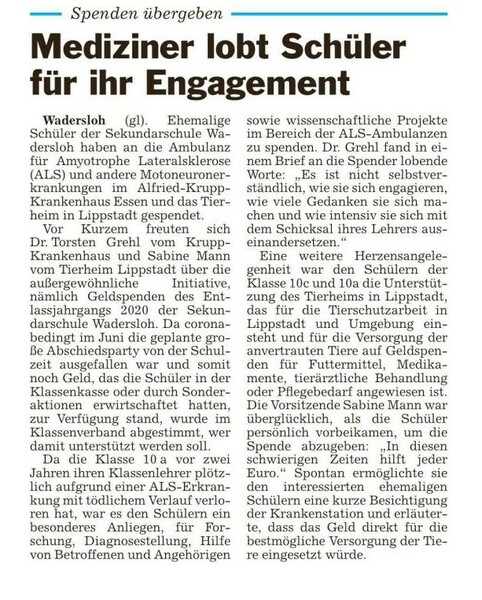 Die geplante große Abschlussfeier konnte leider nicht stattfinden. Daher war noch Geld in der Kasse des Abschlussjahrgangs übrig.