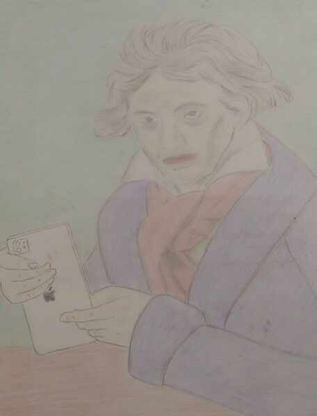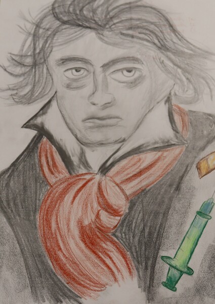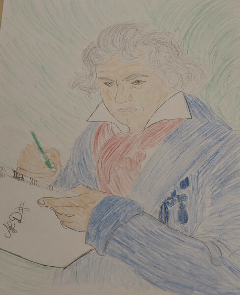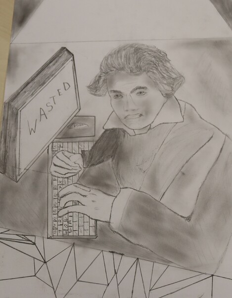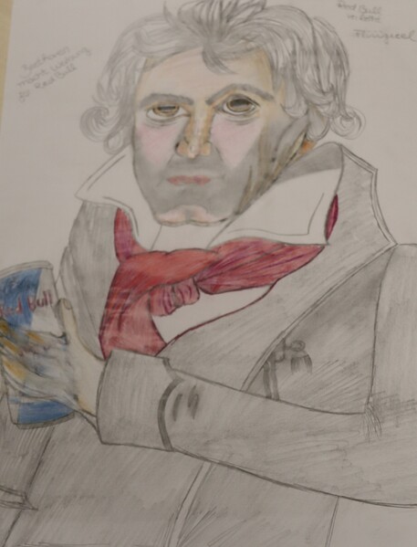 Gemeint ist Ludwig van Beethoven, der von den Schülerinnen und Schülern der Zehnerklassen ins Auge genommen wurde.