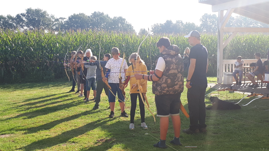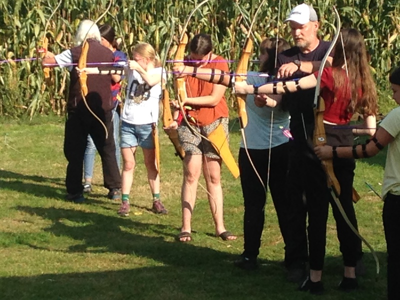 Aber auch sportlich sollte es werden, als es zum Bogenschießen ging. Vollen Einsatz zeigten die Schüler und Schülerinnen bei der Gewässeruntersuchung im nahegelegenen Bach.