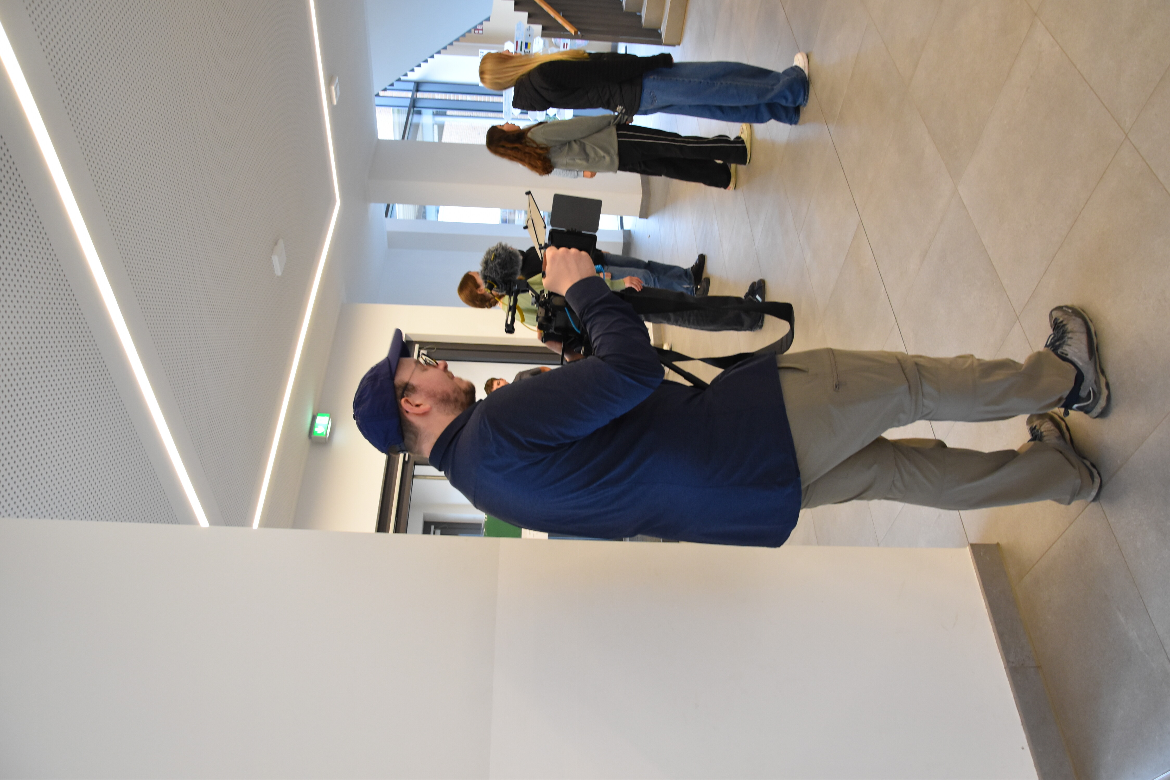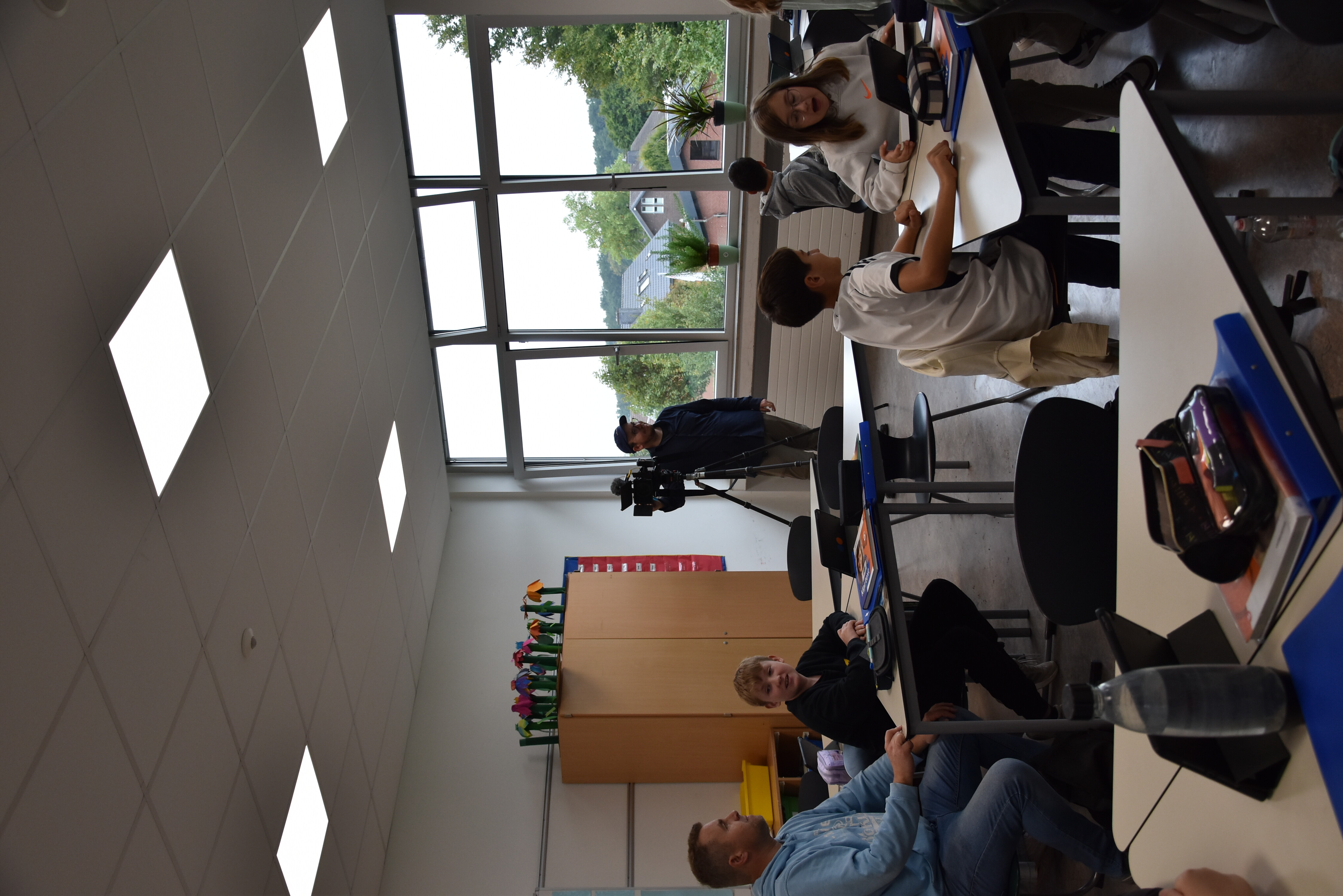 Am Montag, den 16. September und am Mittwoch, den 18. September fragten viele Schüler_innen, weshalb da "so ein Mann mit Kamera" herumlaufen würde. Die Antwort war leicht zu geben und die Freude darüber dann groß: Der Mann war Benedikt Brüggentthies von "MeinWadersloh" und er sammelte die Aufnahmen für den geplanten, kurzen Image-Film über die SKW. An den beiden Tagen hielt man Herrn Brüggenthies ganz schön auf Trapp: Quer durch das Gebäude und über die Außenanlagen bis hin zur Firma Bühlbecker (das Gartenhaus im Bau...) führte ihn seine Suche nach Filmmaterial. Unterricht, Alltagssituationen und Besonderheiten der SKW sollen im späteren Film zu sehen sein. Wir sind schon mächtig gespannt, was da nun erschaffen wird und senden schon einmal ein dickes Dankeschön vorab!