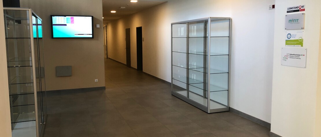 Sie befinden sich im Eingangsbereich und werden in den nächsten Wochen mit den Ergebnissen der Schülerinnen und Schüler aus den unterschiedlichsten Fächern bestückt.