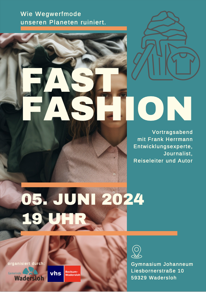Nachhaltigkeitsexperte Frank Herrmann erläutert in einem Vortrag in Wadersloh, welche Folgen für Mensch und Umwelt die Wegwerfmode mit sich bringt, warum weniger mehr ist und welche Alternativen wir beim Einkauf haben.
