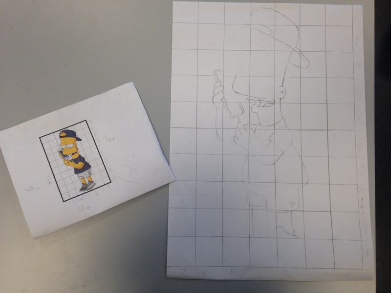 Kästchen für Kästchen wurde zunächst das Bild übertragen und anschließend angemalt.