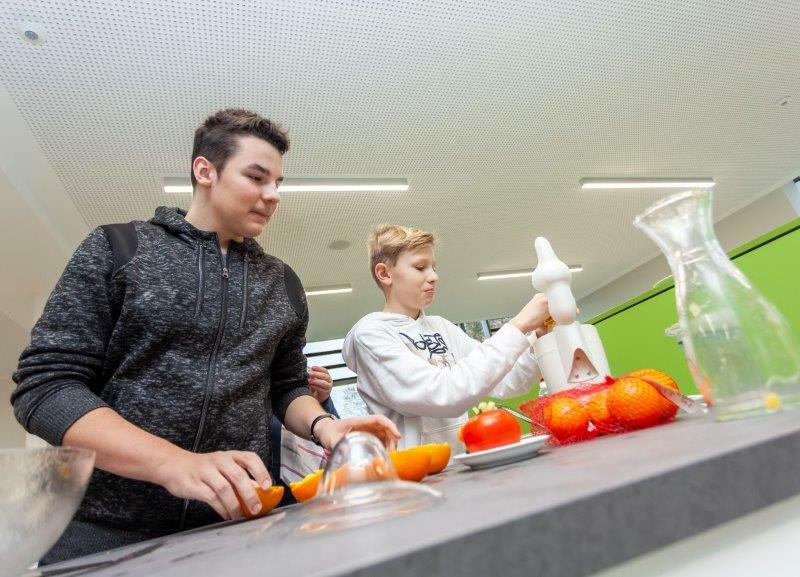 Schülerinnen und Schüler erleben im Schulgarten durch Fühlen, Schmecken, Sehen und Riechen den Verlauf der Jahreszeiten im Garten.