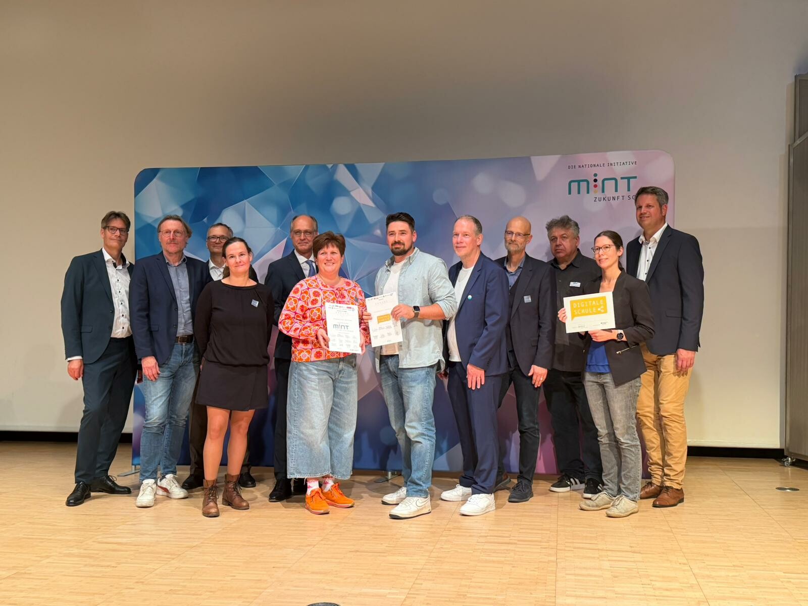 Die Ehrungen sind jeweils drei Jahre gültig und würdigen herausragendes Engagement in Mathematik, Informatik, Naturwissenschaften, Technik (MINT) und digitaler Bildung. Die über 600 Schüler*innen und Lehrkräfte kamen im Heinz Nixdorf Museumsforum in Paderborn aus ganz NRW zu einem MINT-Kongress mit dutzenden MINT-Workshops, Laborbesuchen, Unternehmensführungen und mehr zusammen.