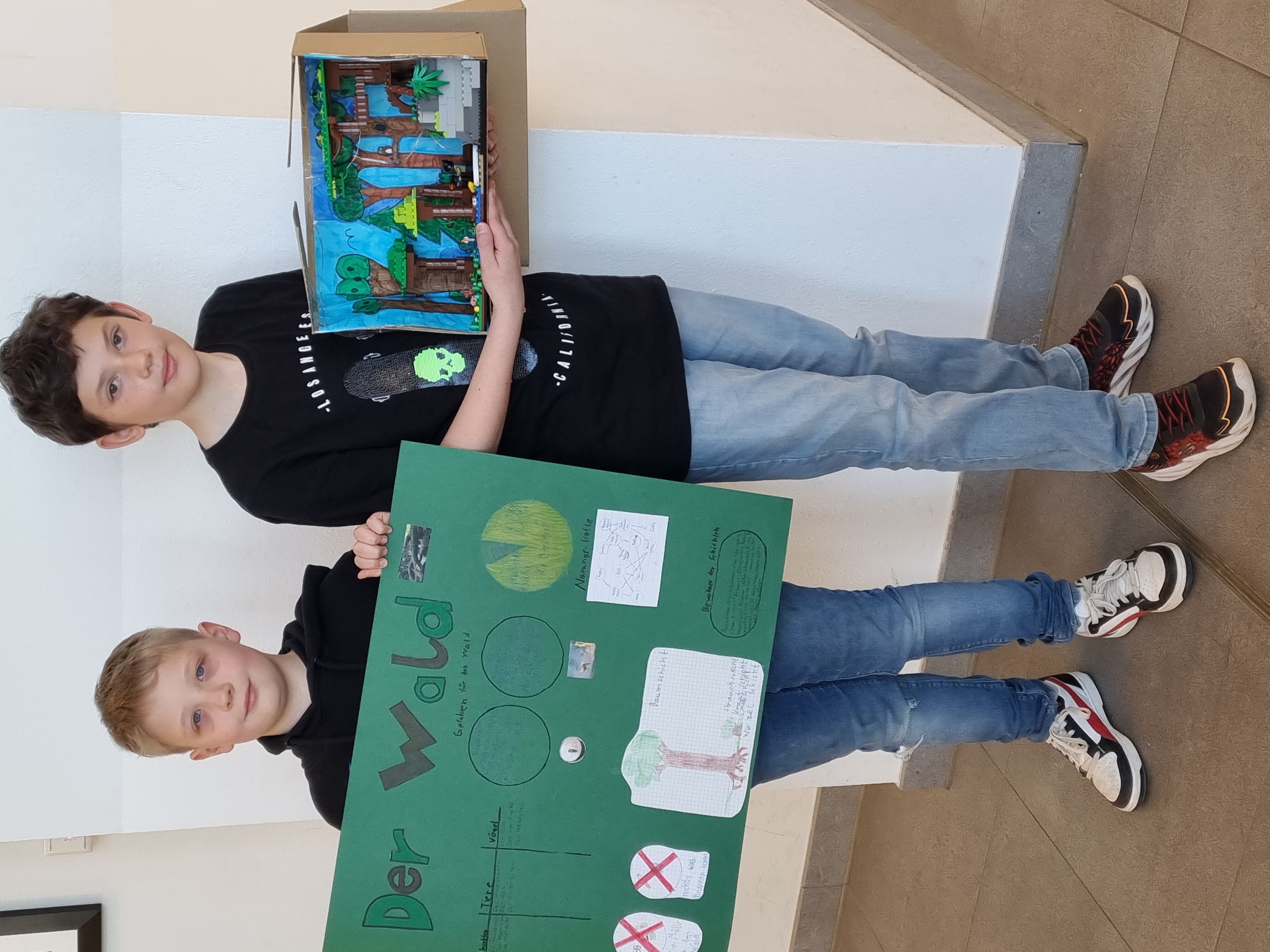 Im Rahmen des NW-Unterrichts konnten die Schüler*innen der Klasse 5a ihre Kreativität vielseitig zeigen – beim Projekt zum Thema „Wald“ konnte jede Gruppe ihre Lernergebnisse auf unterschiedliche Art und Weise präsentieren. Es sind tolle Sachen erstanden – Plakate, Boxen, Referate. Es hat allen Spaß gemacht.