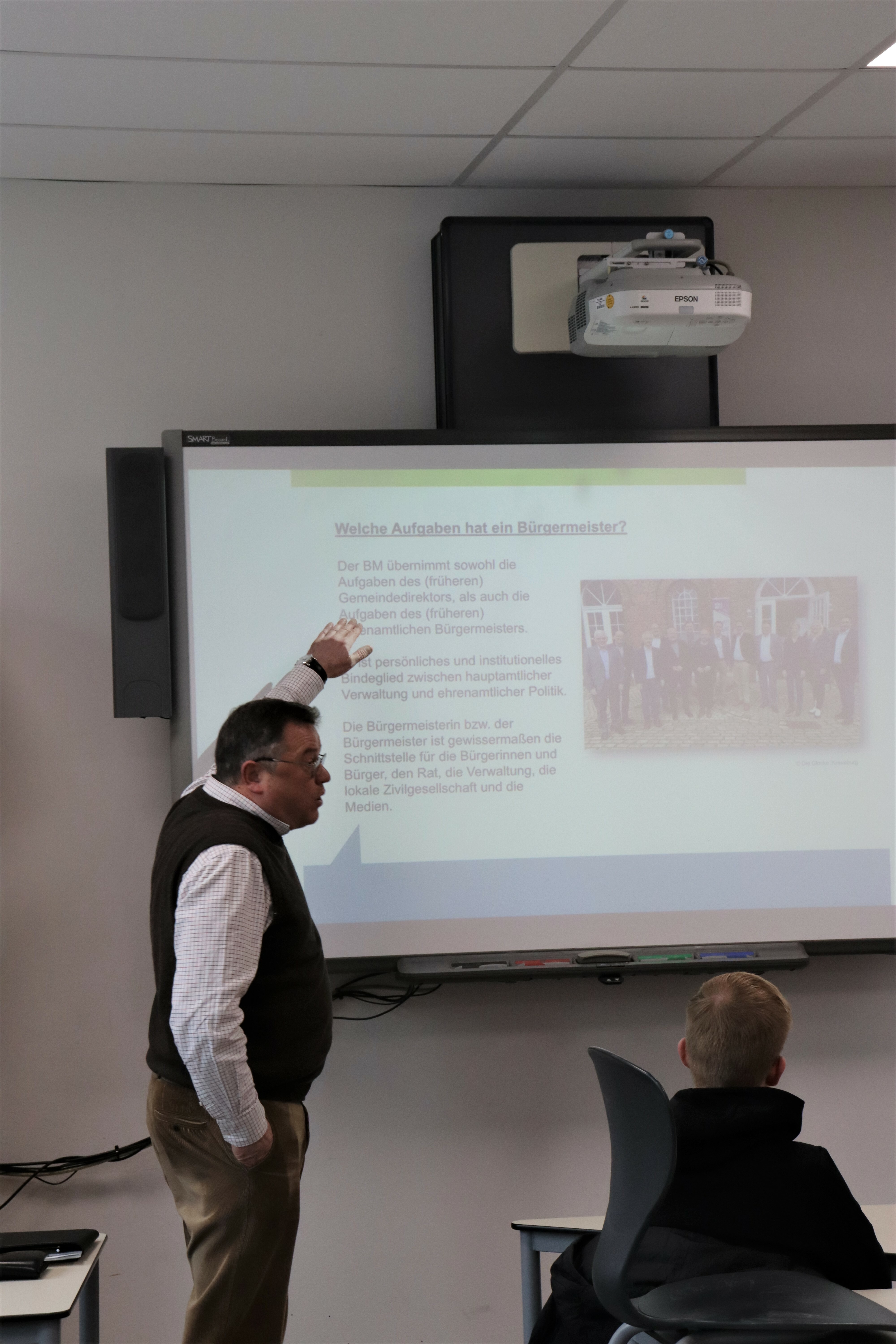 Er stellte den SchülerInnen seinen Job vor. Wie wird man eigentlich Bürgermeister und wenn man es dann ist, welche Aufgaben warten dann darauf bearbeitet zu werden?