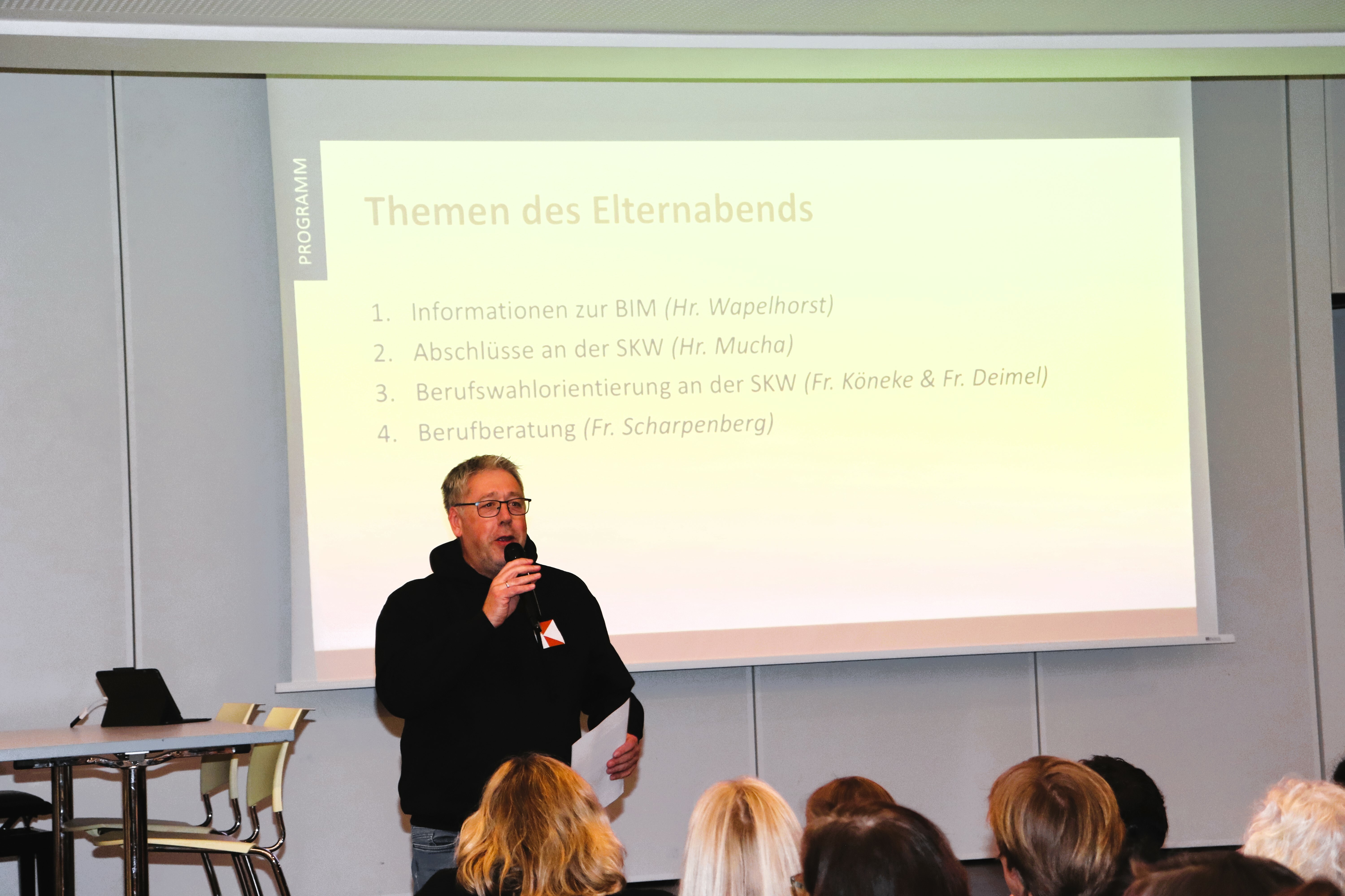 Frau Köneke und Frau Deimel stellten die Maßnahmen der Berufsorientierung an der SKW vor und die Berufsberaterin Frau Scharpenberg präsentierte zum Schluss ihre Arbeit.