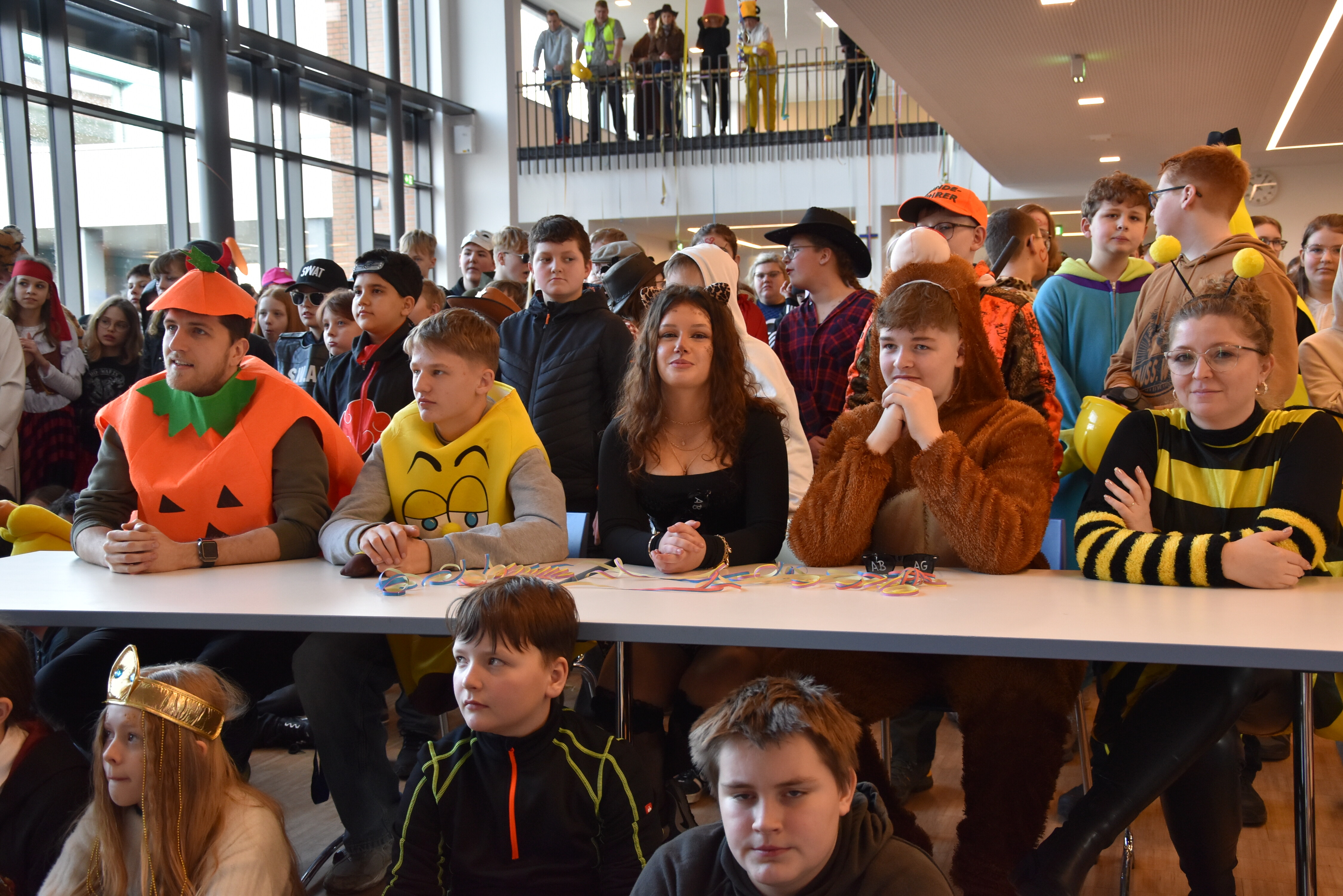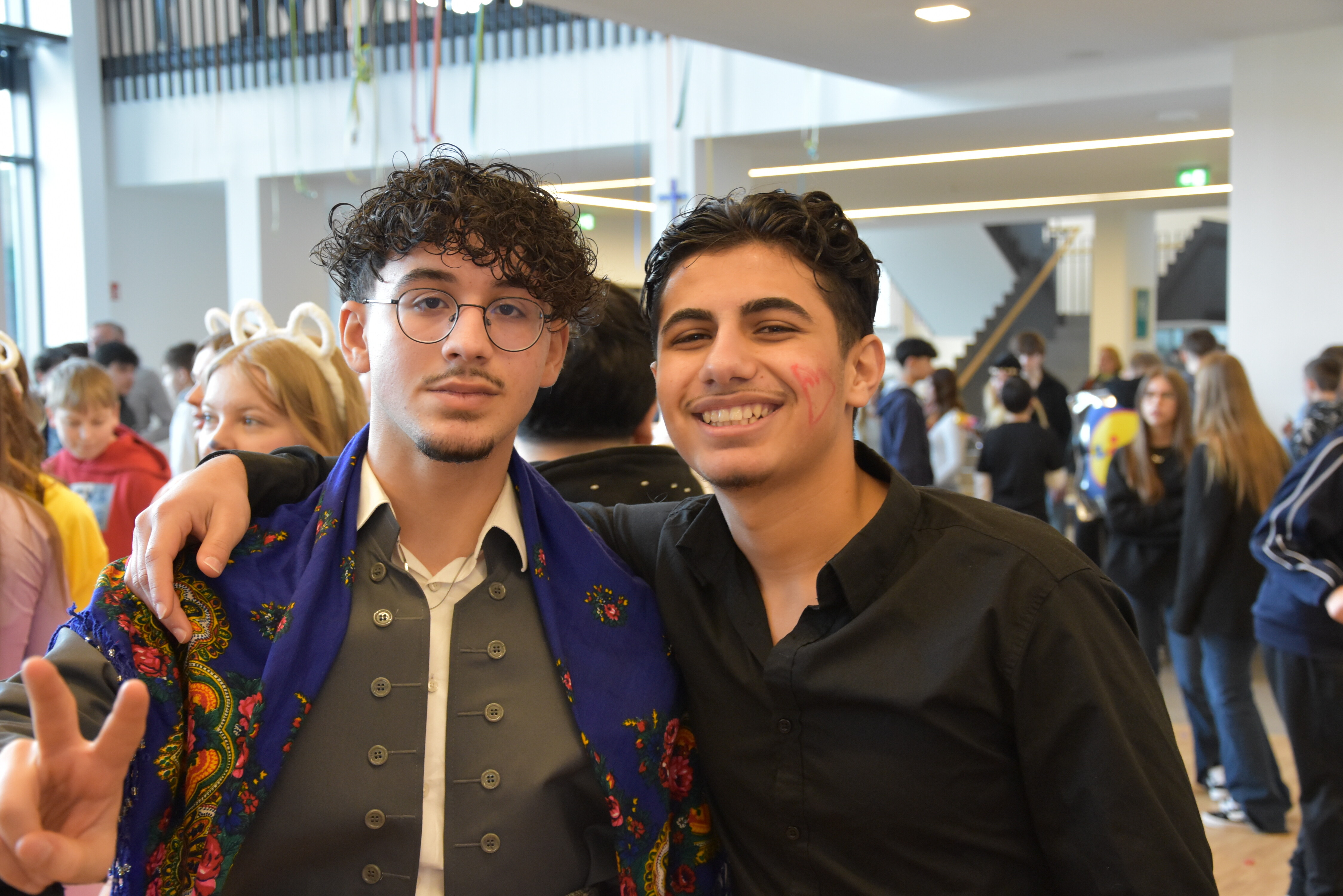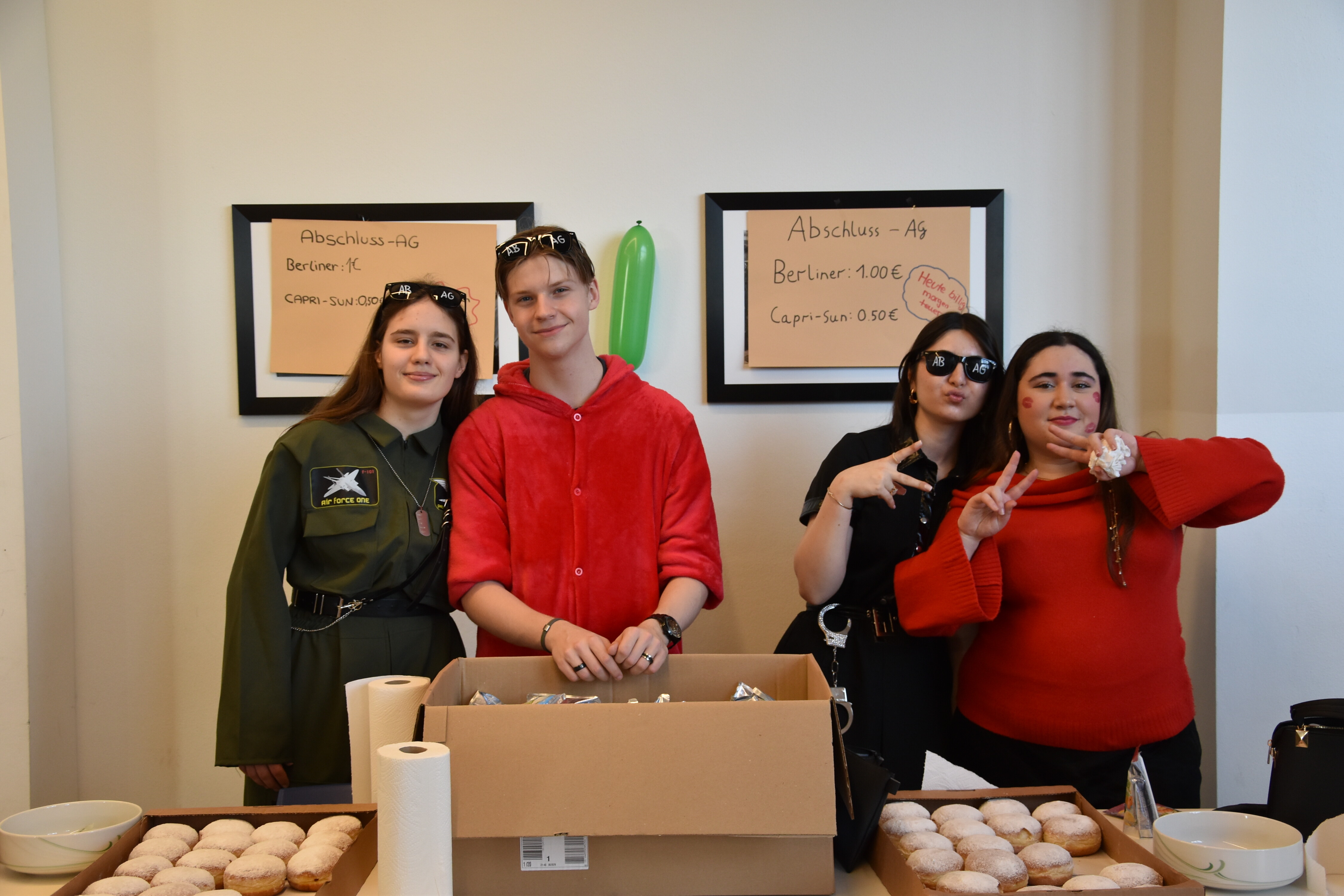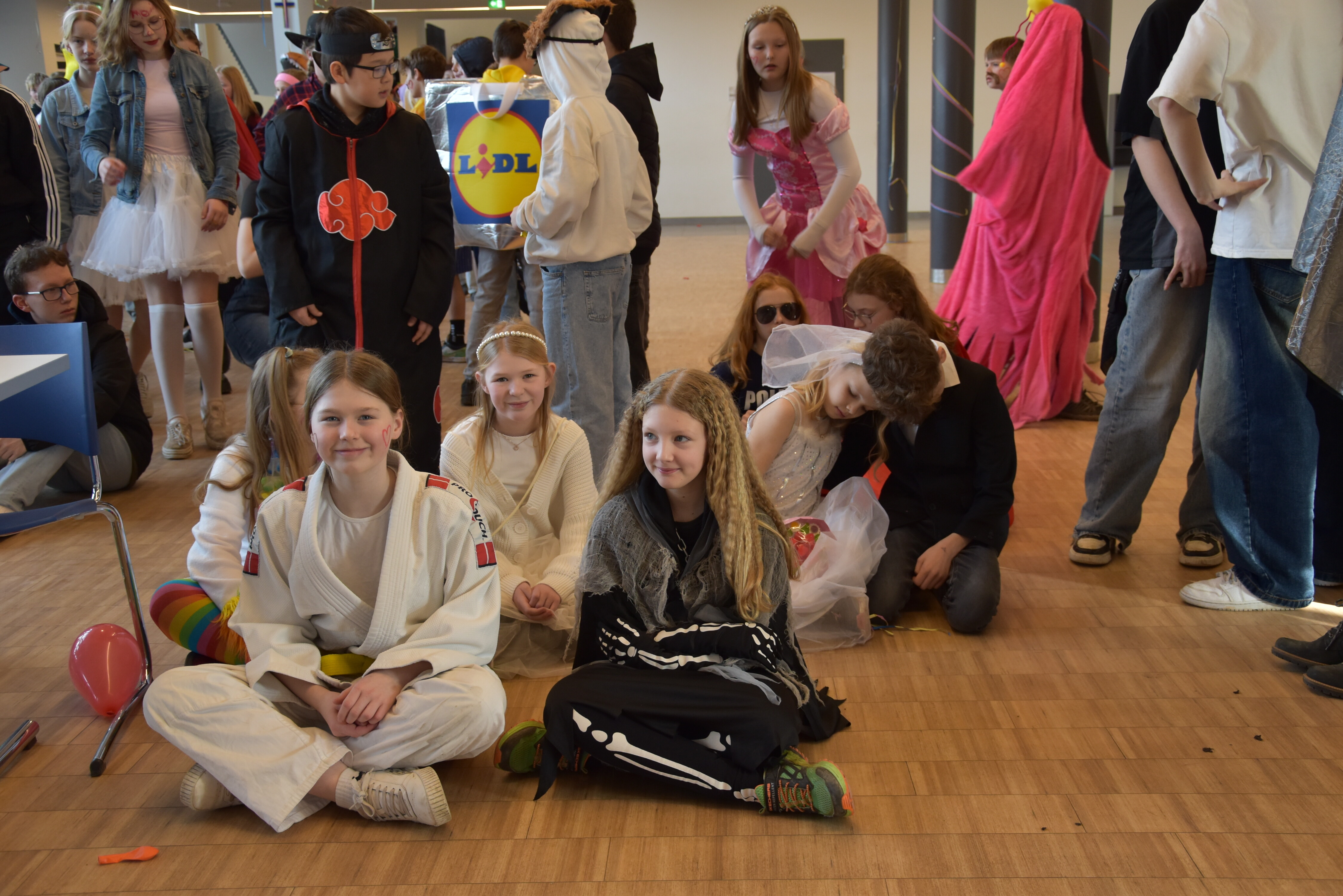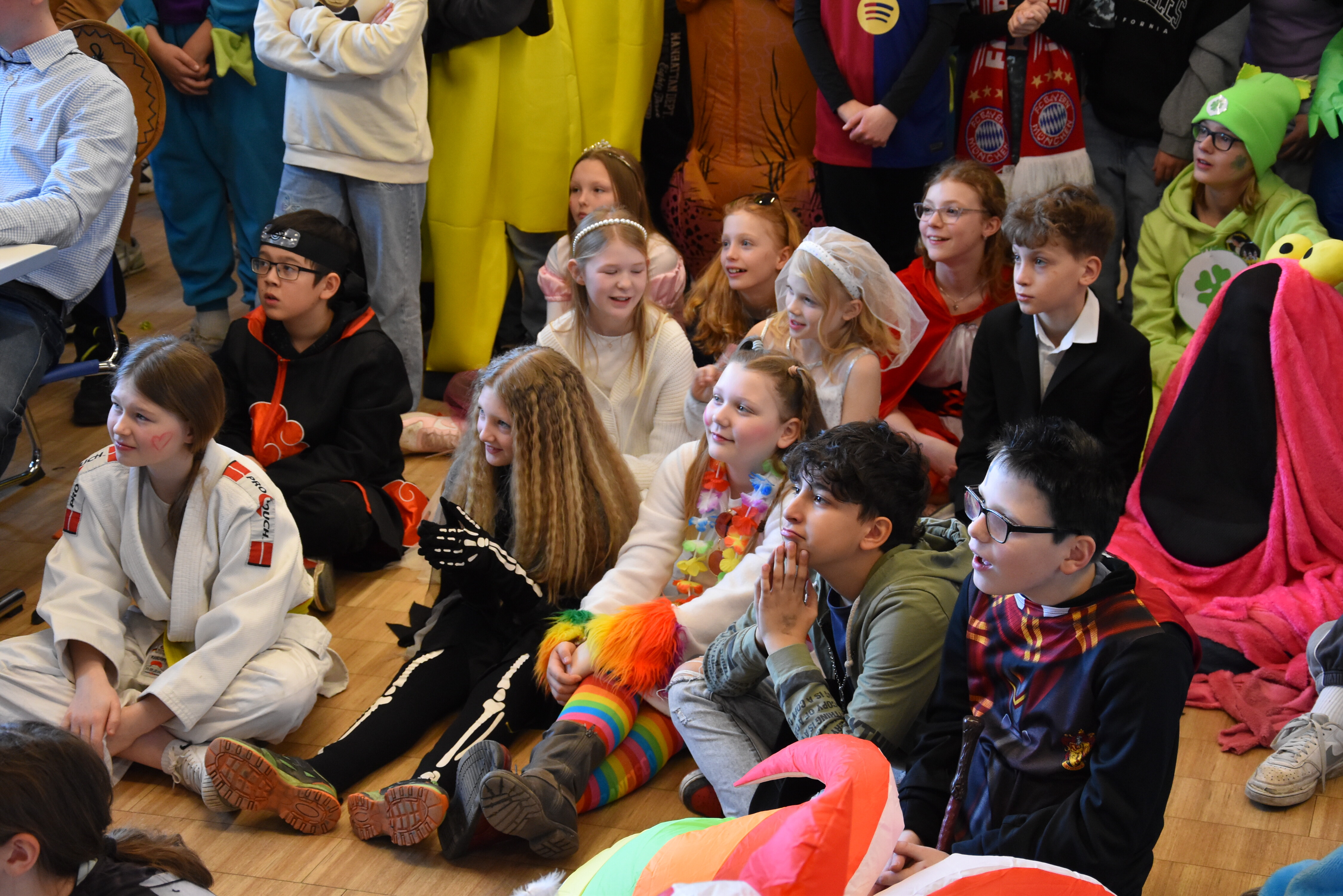 An unserer Schule gibt es so einige Traditionen, eine davon ist, dass man an Weiberfastnacht kräftig Karneval feiert. Jedes Jahr planen die 10. Klassen einen bunten Vormittag für alle Schüler und Schülerinnen mit Musik, Kostüm-Wettbewerb und allem, was man braucht, um in Karnevalsstimmung zu kommen. Auch dieses Jahr füllte sich die Mensa mit allerlei bunt verkleideten Kindern und Jugendlichen, die das Angebot der 10. Klassen gern und lautstark annahmen. Angefangen wurde der Schultag mit der Prämierung des besten Klassenkostüms. Nach der ersten Pause wurden die Schüler und Schülerinnen dann in einer nicht enden wollenden Polonaise in die Mensa geleitet, wo die Party mit Kostümprämierung und allerlei Unterhaltung dann bis zur zweiten Pause fortgesetzt wurde.