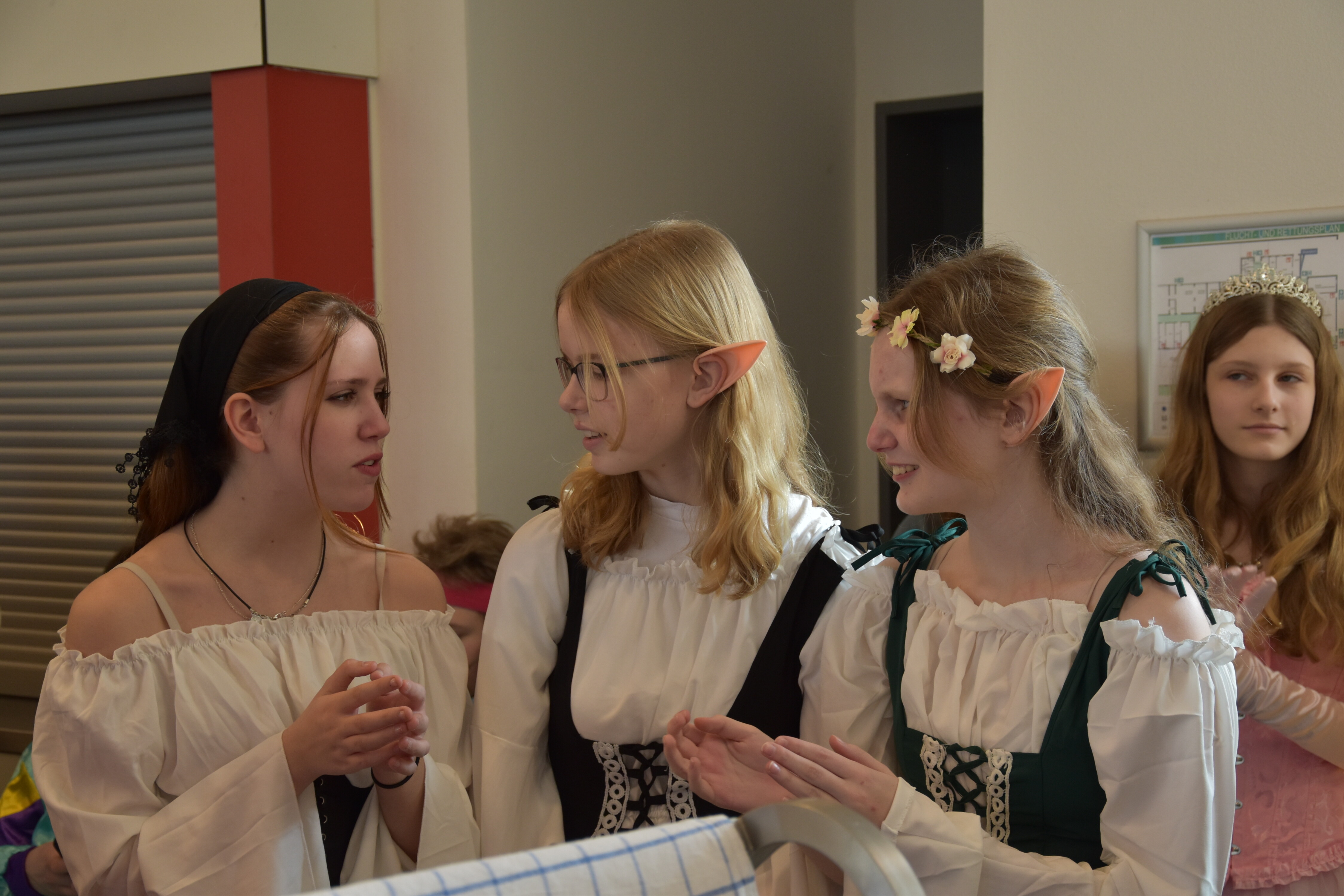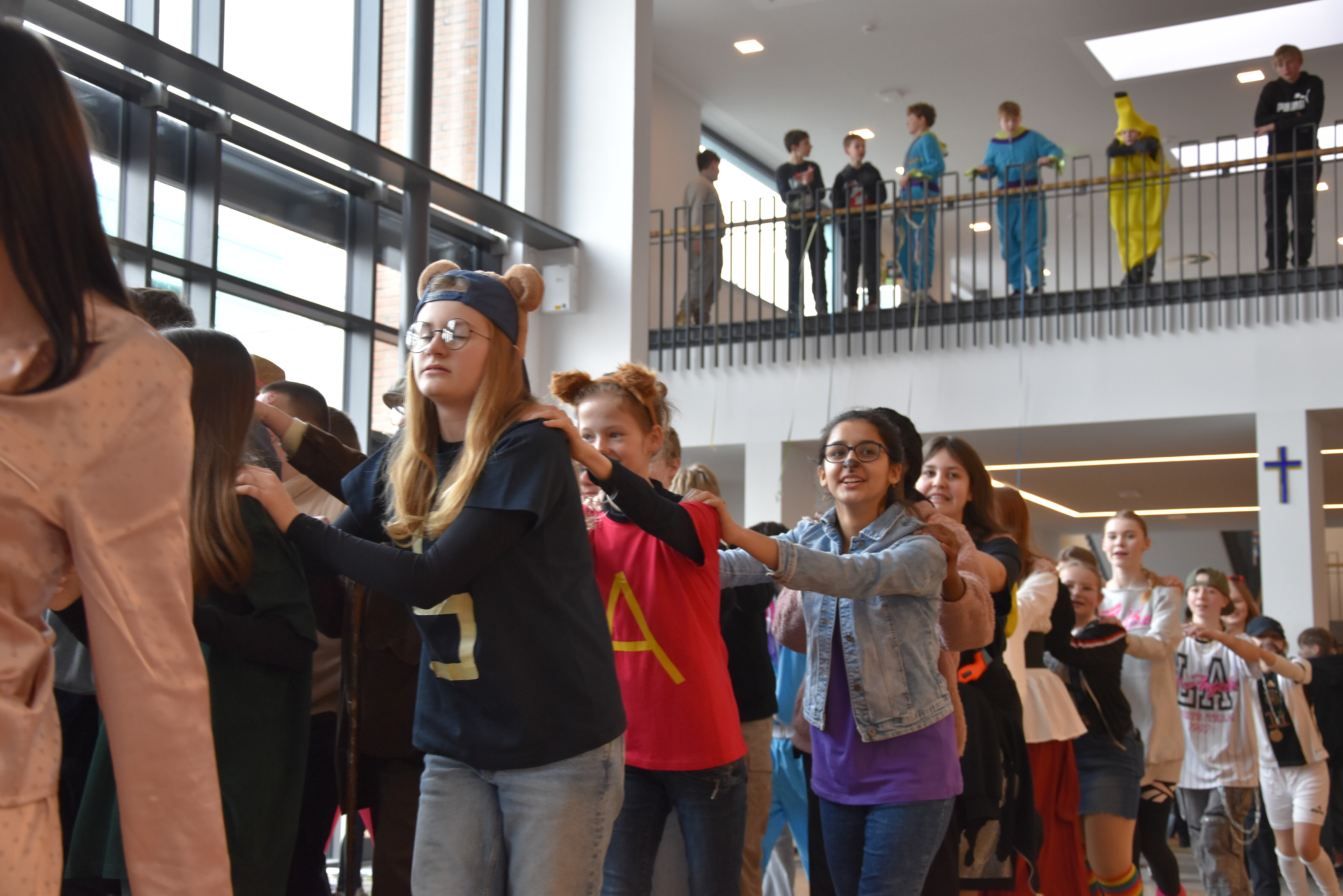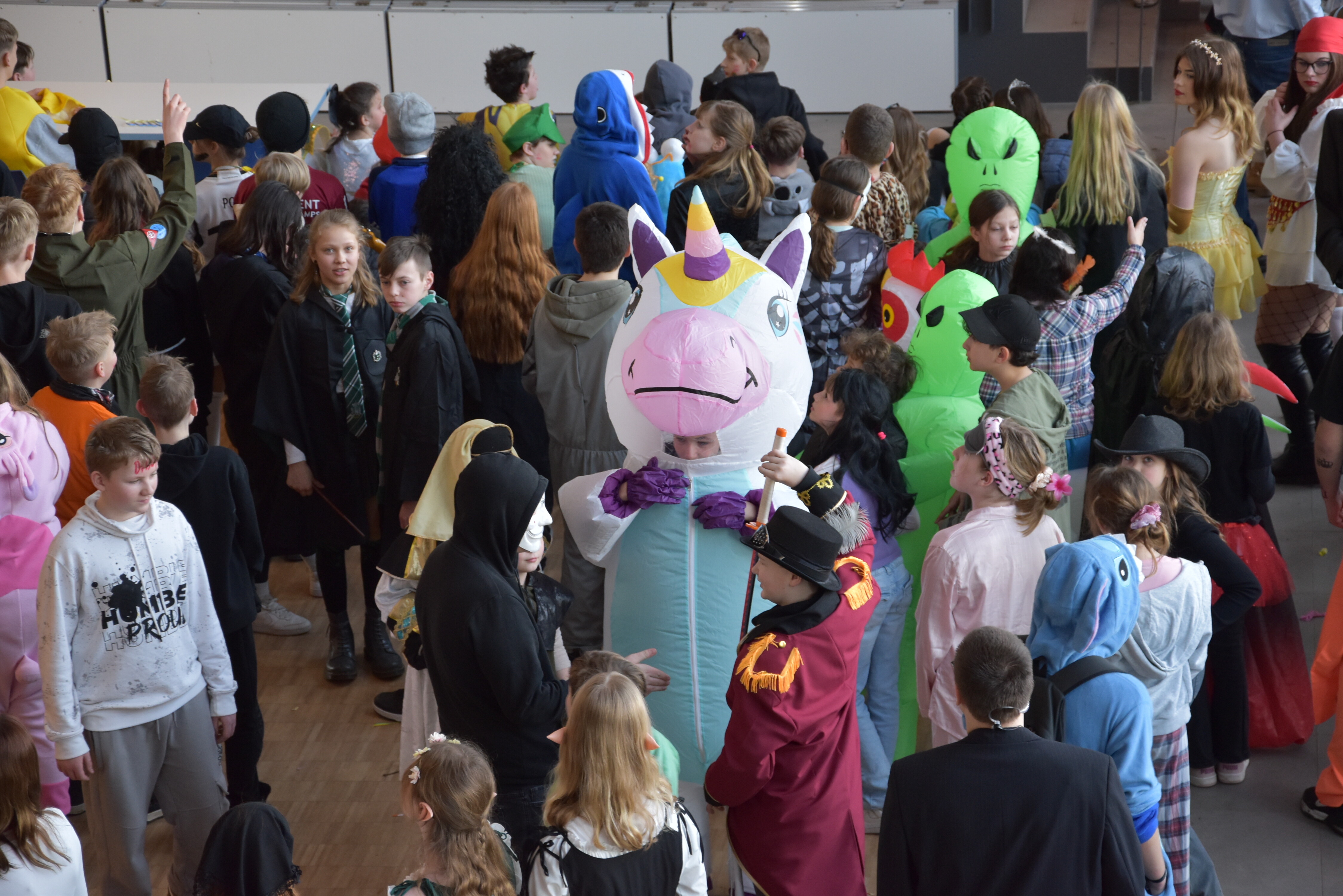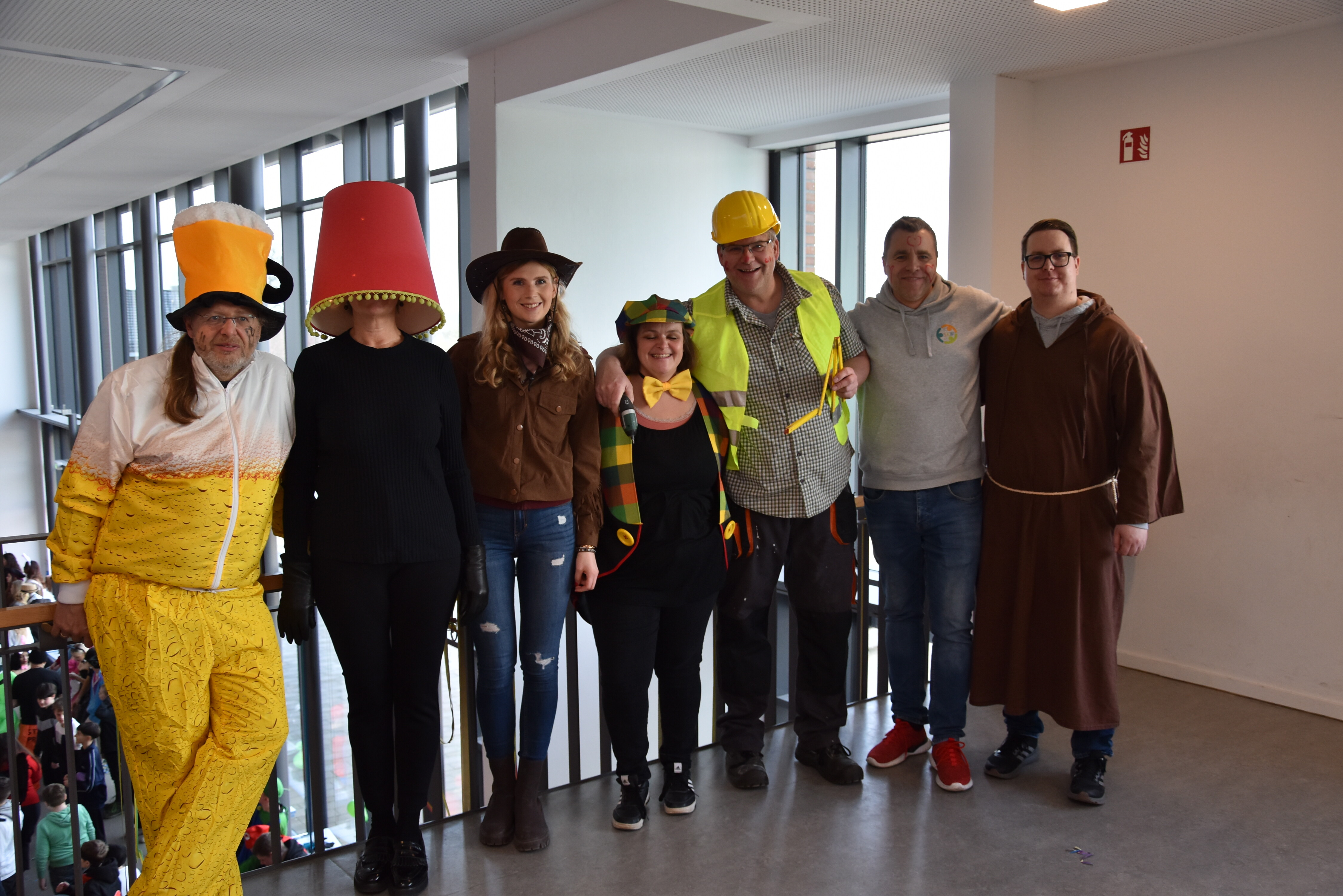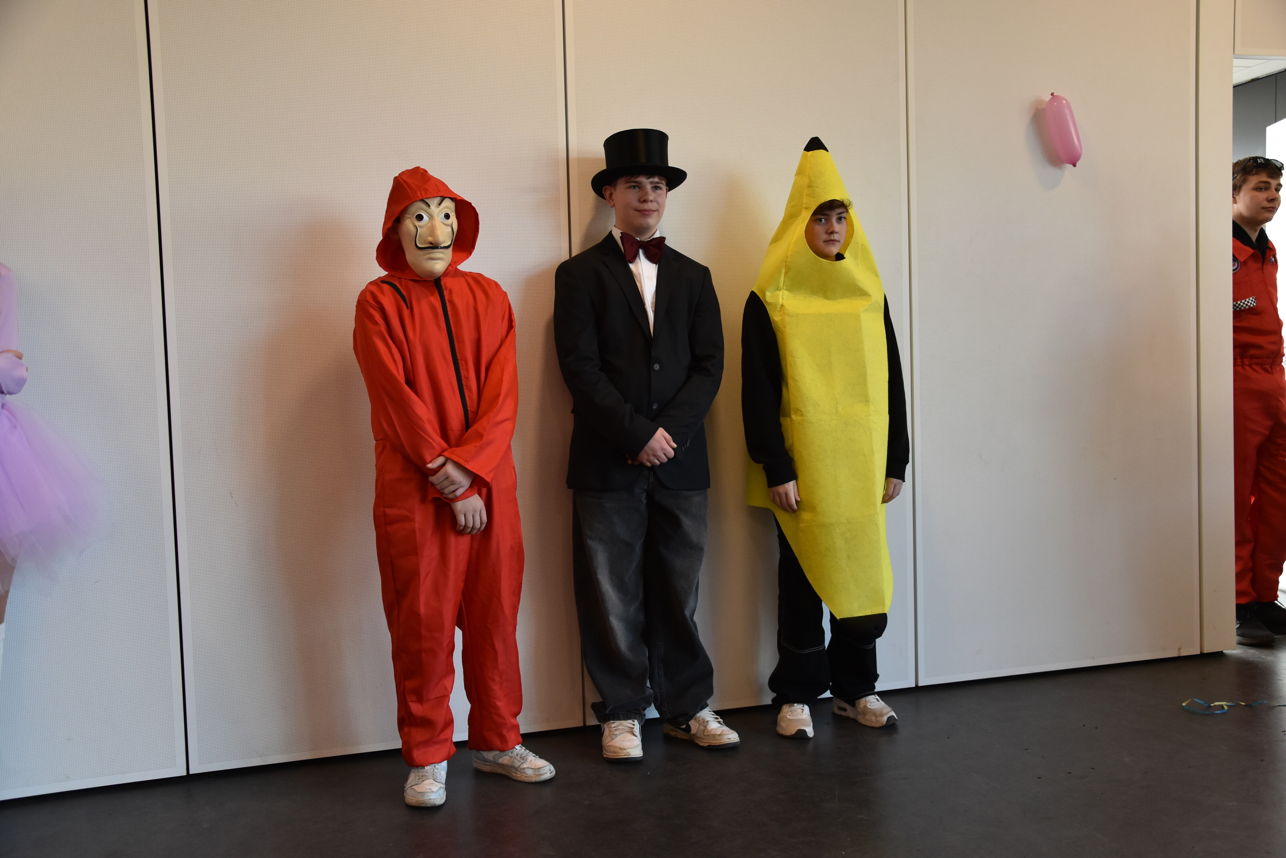An unserer Schule gibt es so einige Traditionen, eine davon ist, dass man an Weiberfastnacht kräftig Karneval feiert. Jedes Jahr planen die 10. Klassen einen bunten Vormittag für alle Schüler und Schülerinnen mit Musik, Kostüm-Wettbewerb und allem, was man braucht, um in Karnevalsstimmung zu kommen. Auch dieses Jahr füllte sich die Mensa mit allerlei bunt verkleideten Kindern und Jugendlichen, die das Angebot der 10. Klassen gern und lautstark annahmen. Angefangen wurde der Schultag mit der Prämierung des besten Klassenkostüms. Nach der ersten Pause wurden die Schüler und Schülerinnen dann in einer nicht enden wollenden Polonaise in die Mensa geleitet, wo die Party mit Kostümprämierung und allerlei Unterhaltung dann bis zur zweiten Pause fortgesetzt wurde.