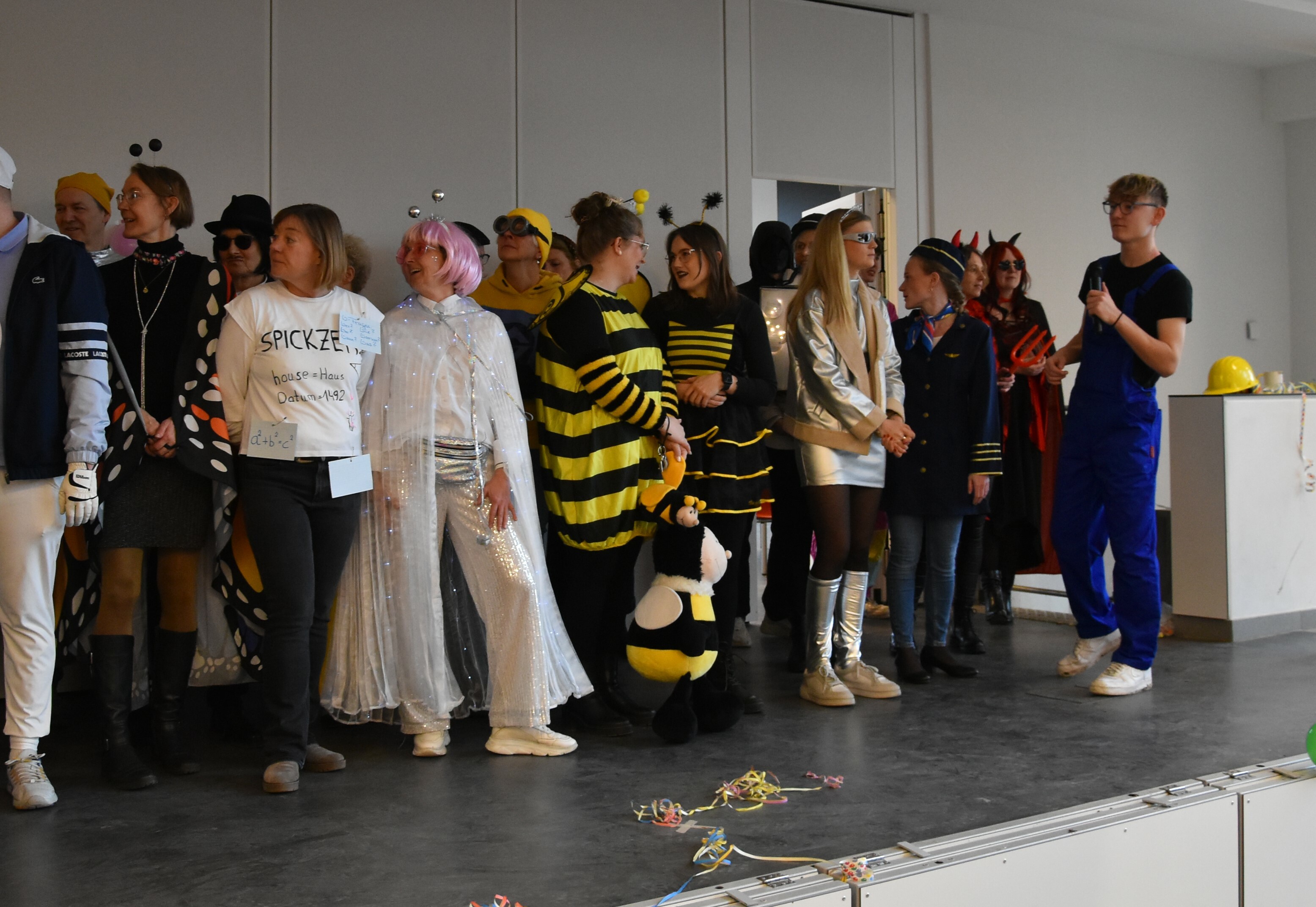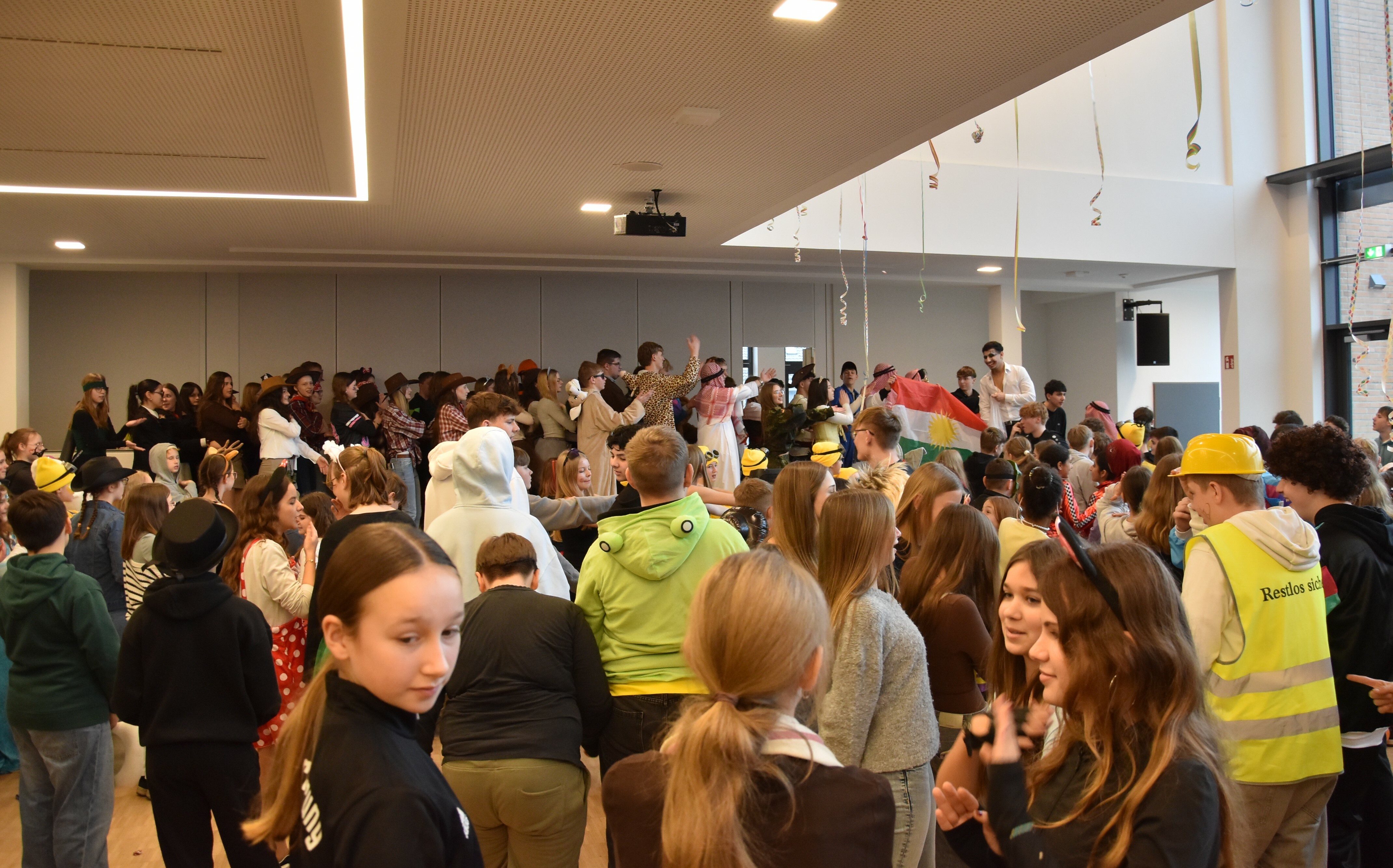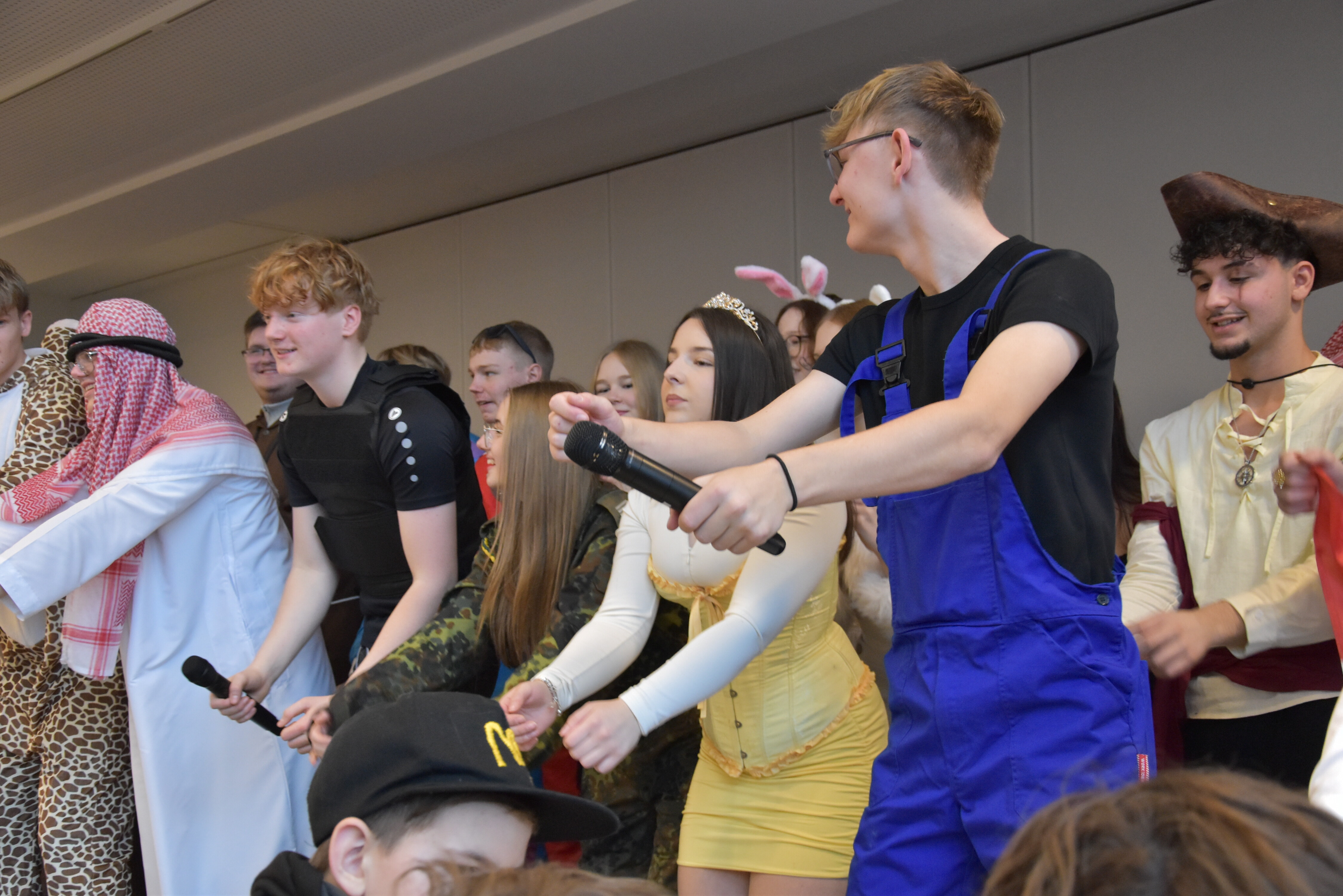 Traditionell wird an unserer Schule an Weiberfastnacht Karneval gefeiert. Hierzu übernehmen die 10er kurzzeitig die Schülerschaft, um mit ihnen in der Mensa ausgelassen zu feiern. Kostüme werden ausgezeichnet und bewundert, es wird getanzt und gelacht. Für einen kurzen Moment wird Unterricht mal hinten angestellt und die bunte Welt des Karnevals wird genossen!