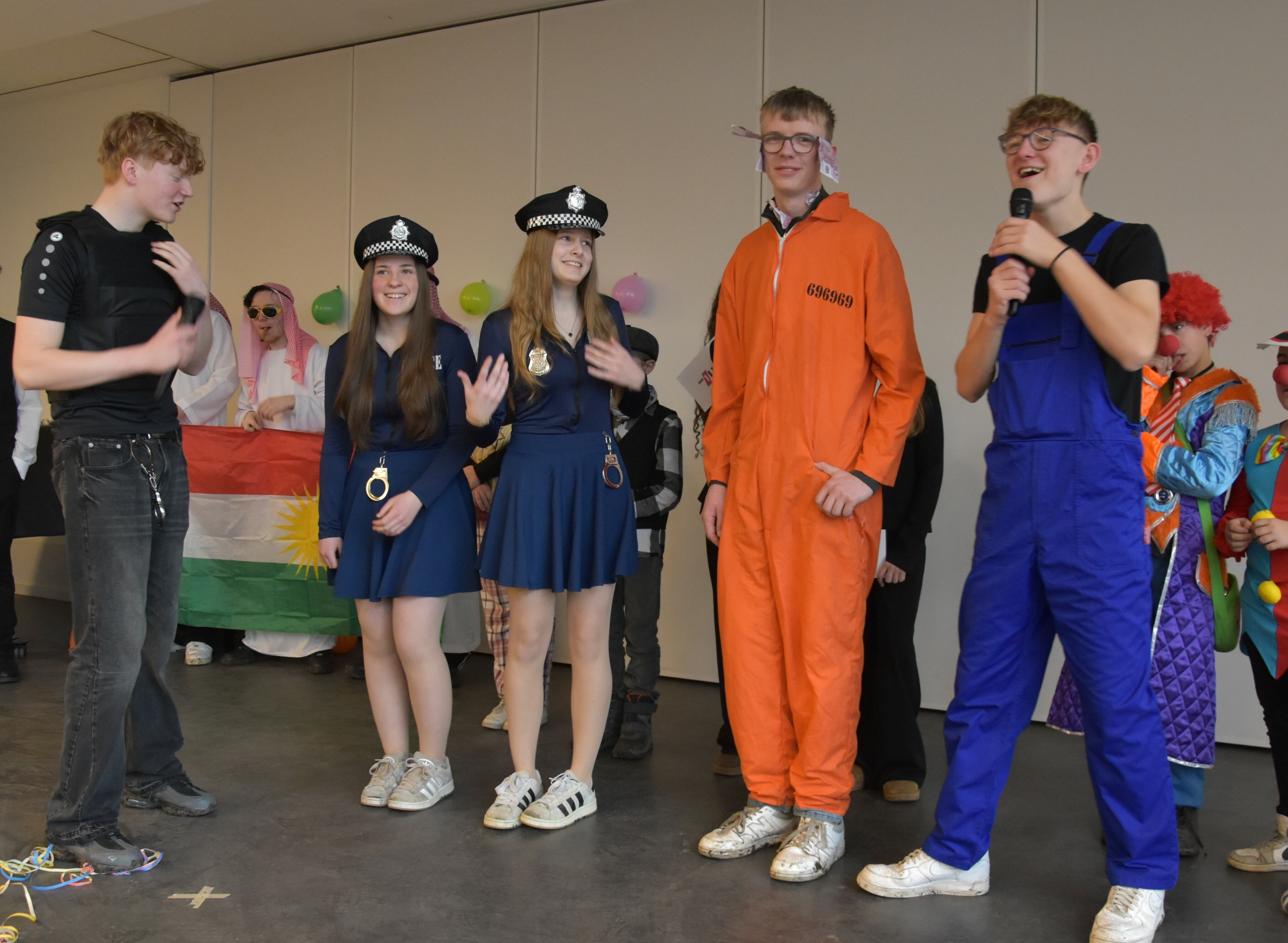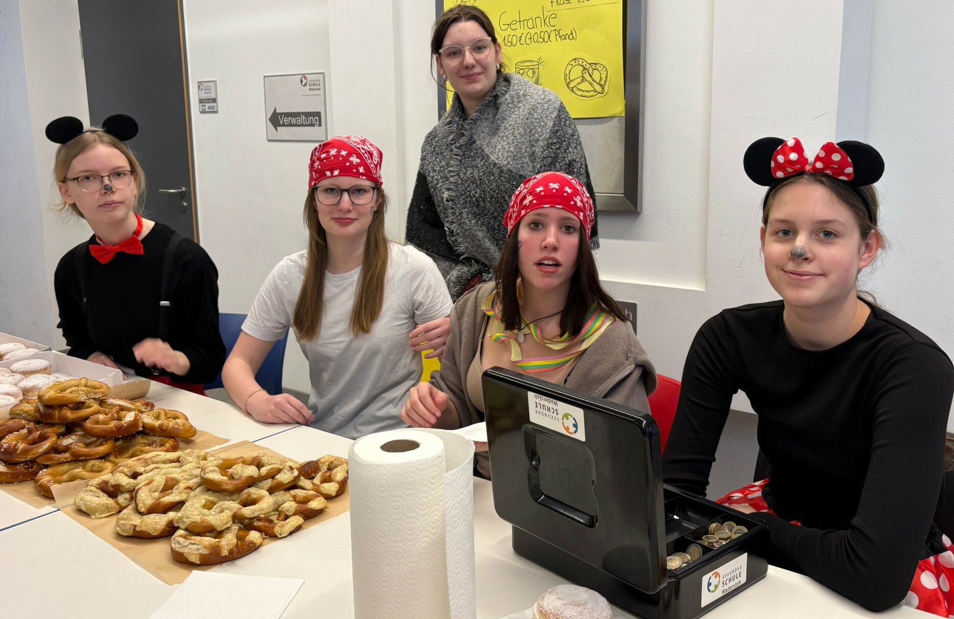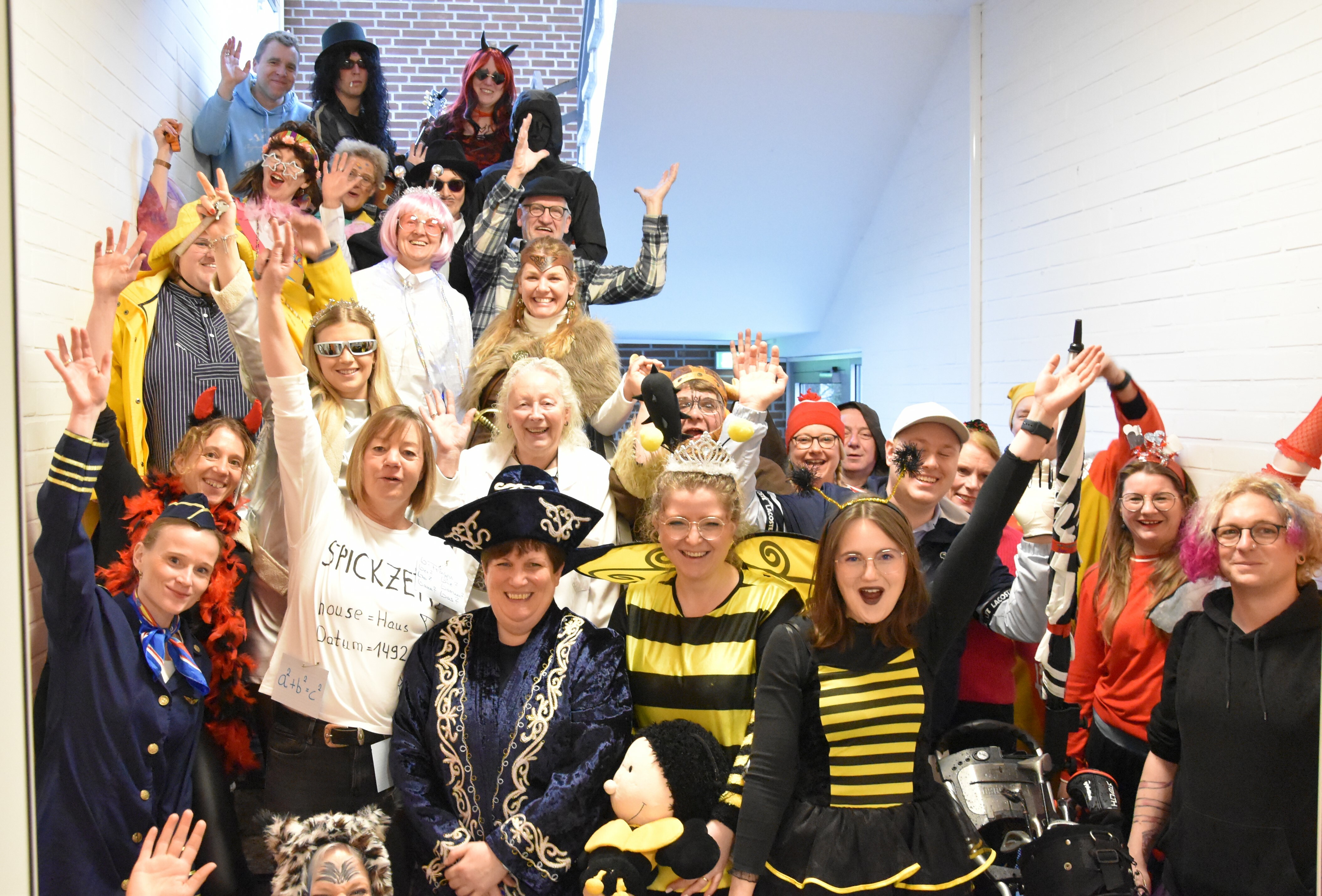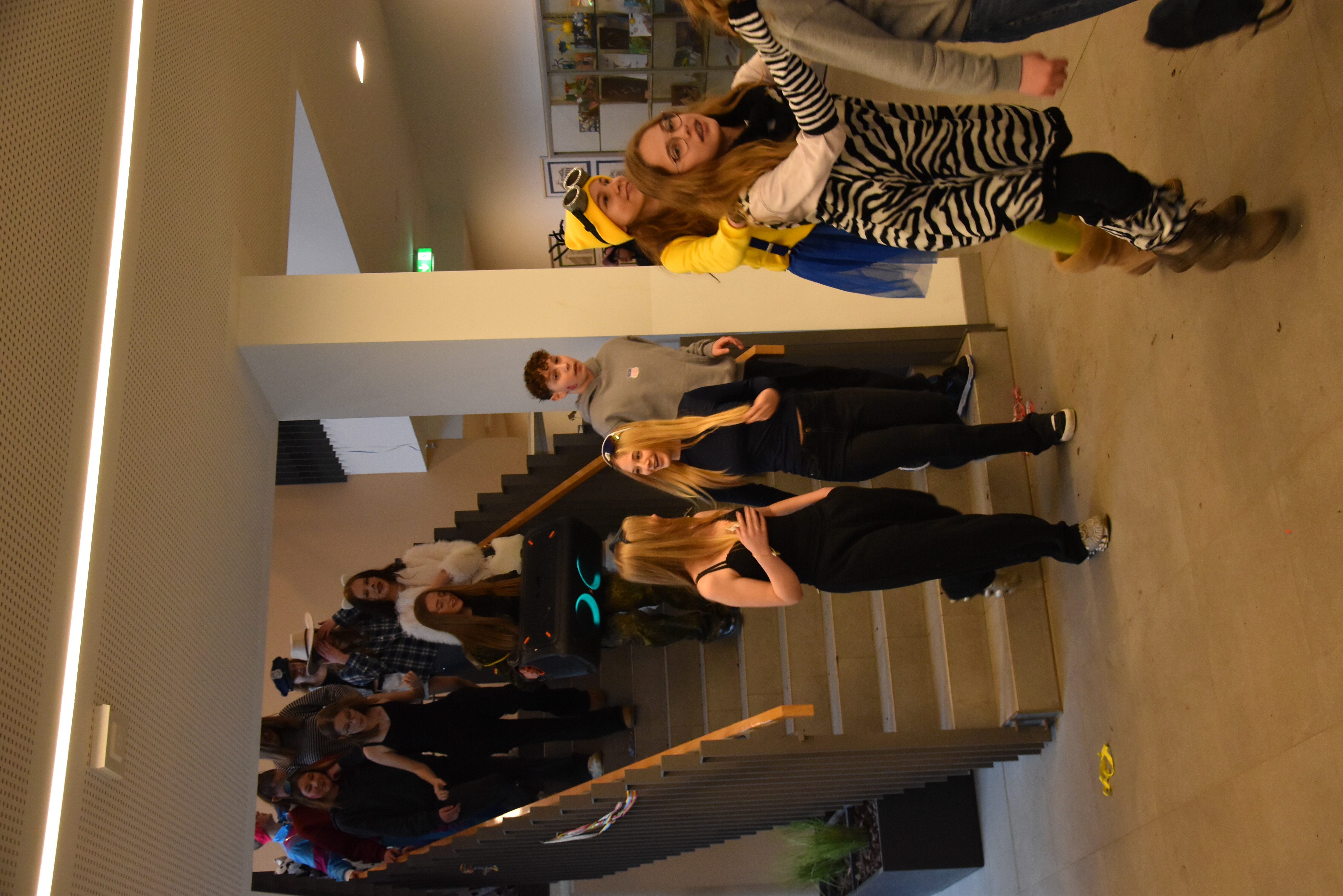 Traditionell wird an unserer Schule an Weiberfastnacht Karneval gefeiert. Hierzu übernehmen die 10er kurzzeitig die Schülerschaft, um mit ihnen in der Mensa ausgelassen zu feiern. Kostüme werden ausgezeichnet und bewundert, es wird getanzt und gelacht. Für einen kurzen Moment wird Unterricht mal hinten angestellt und die bunte Welt des Karnevals wird genossen!
