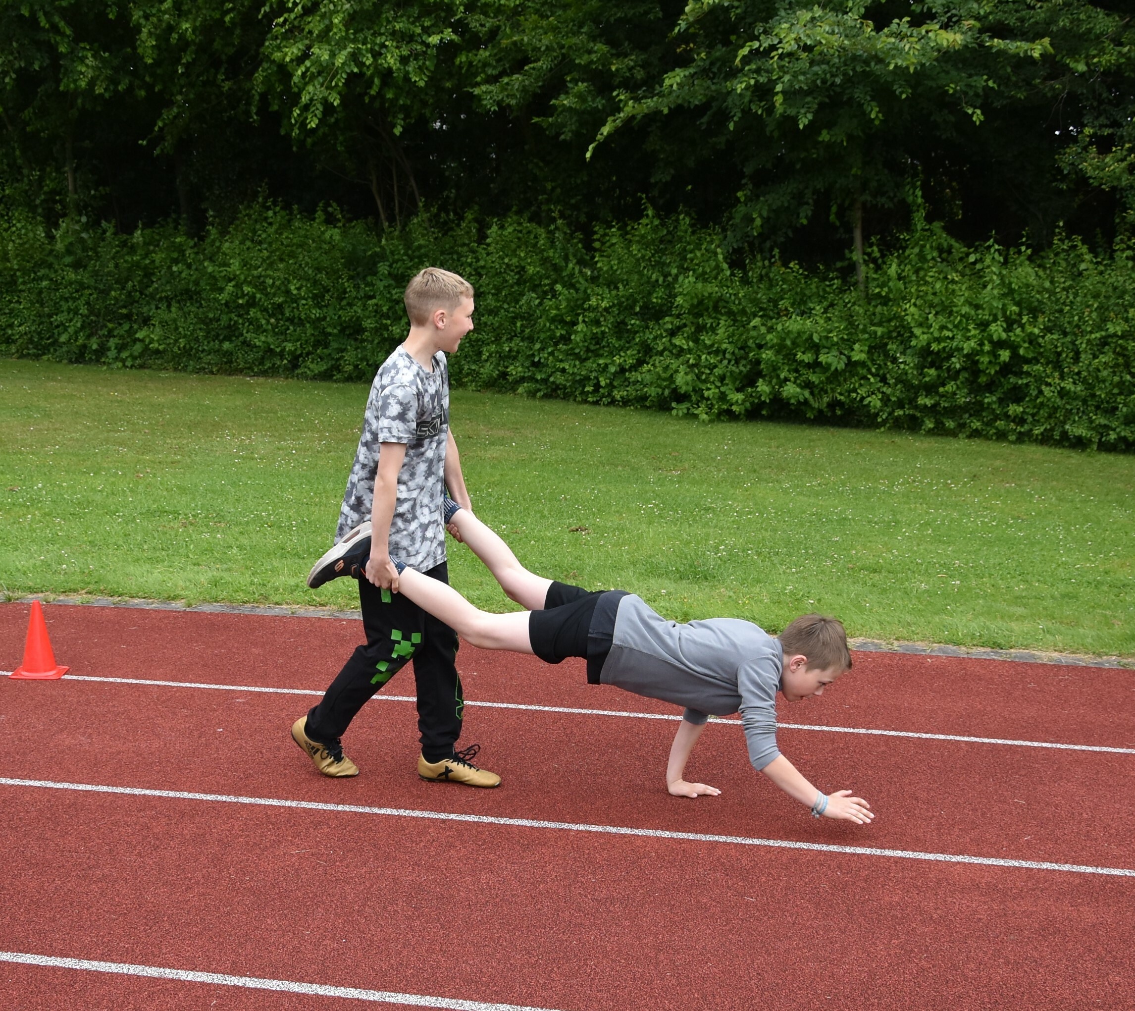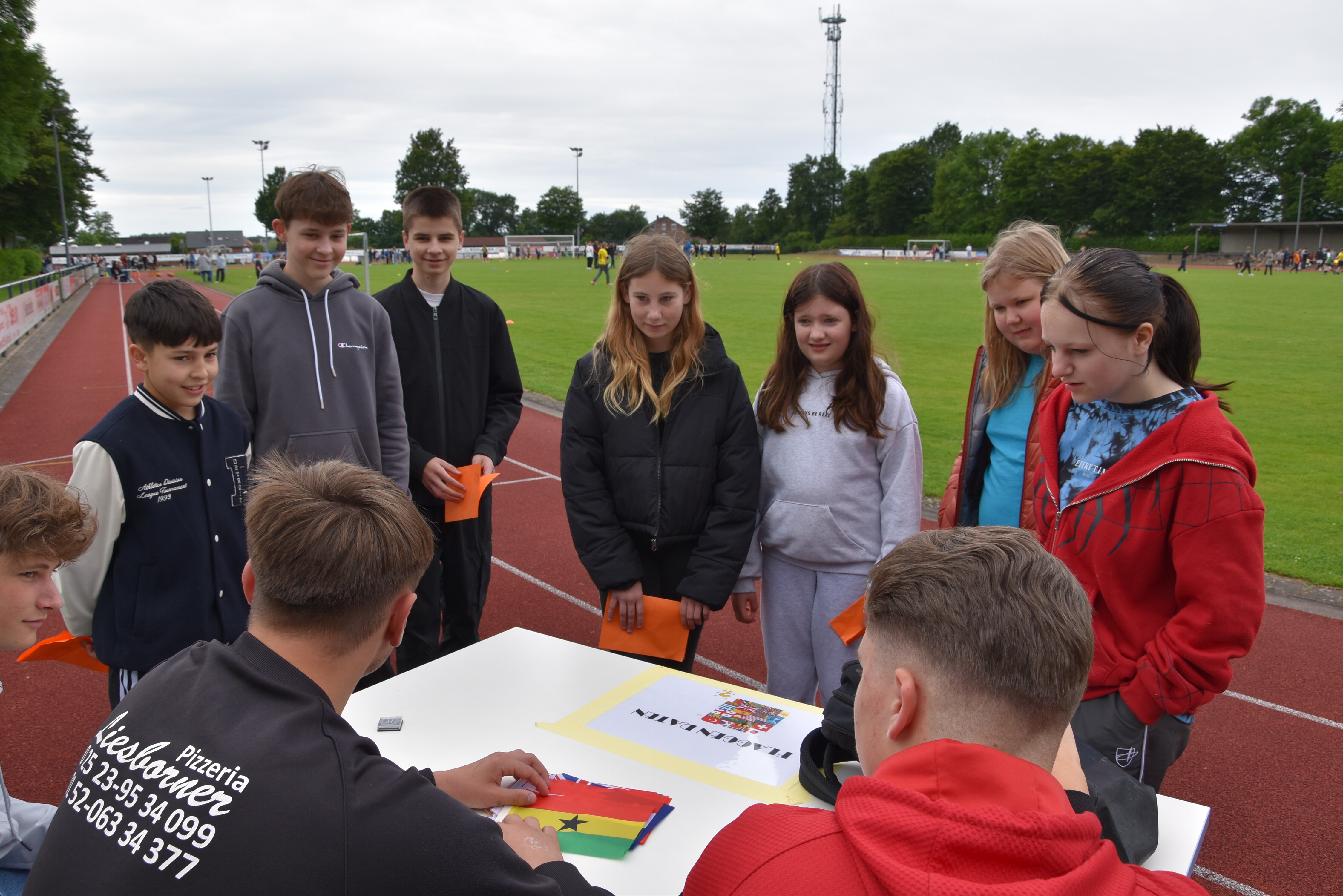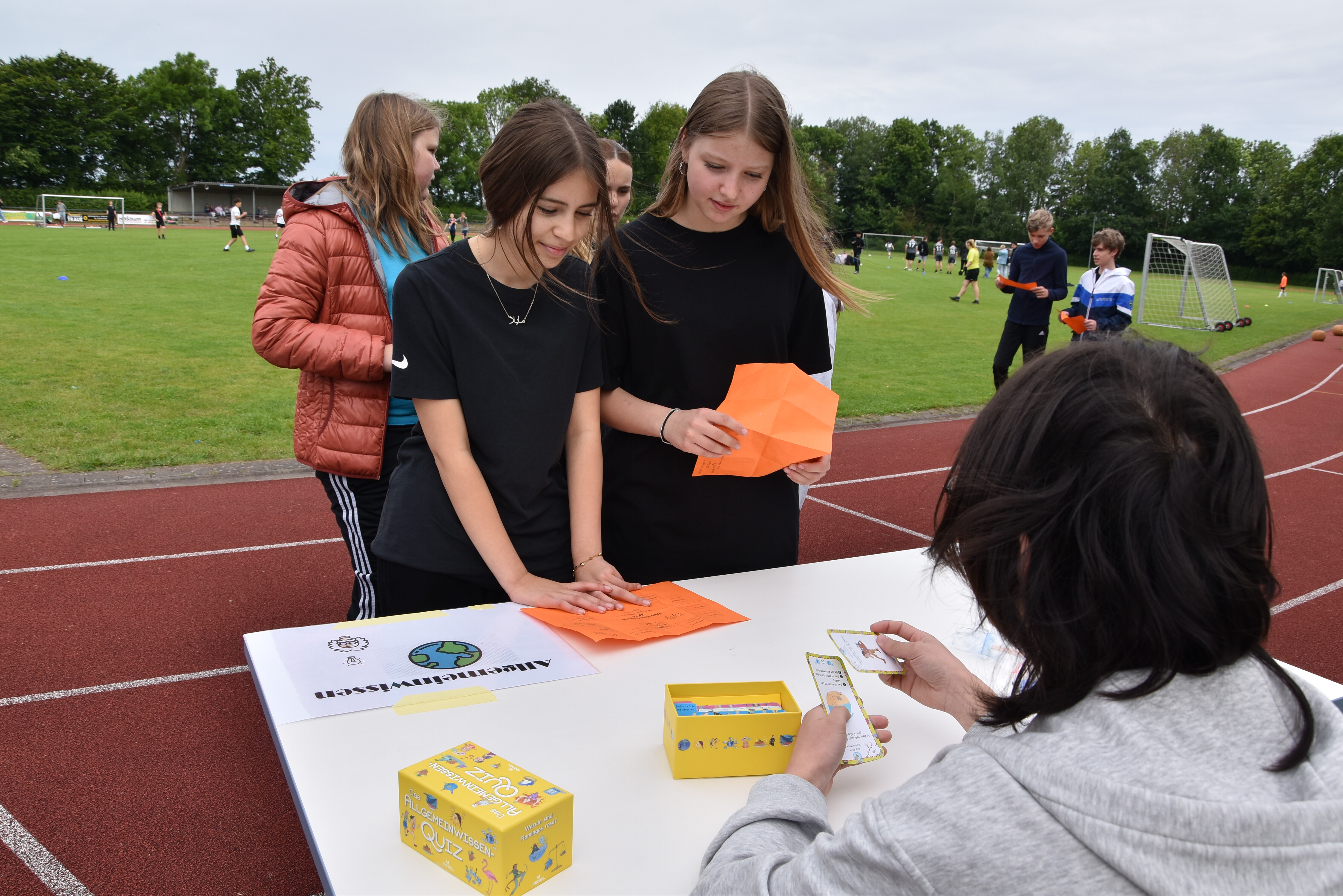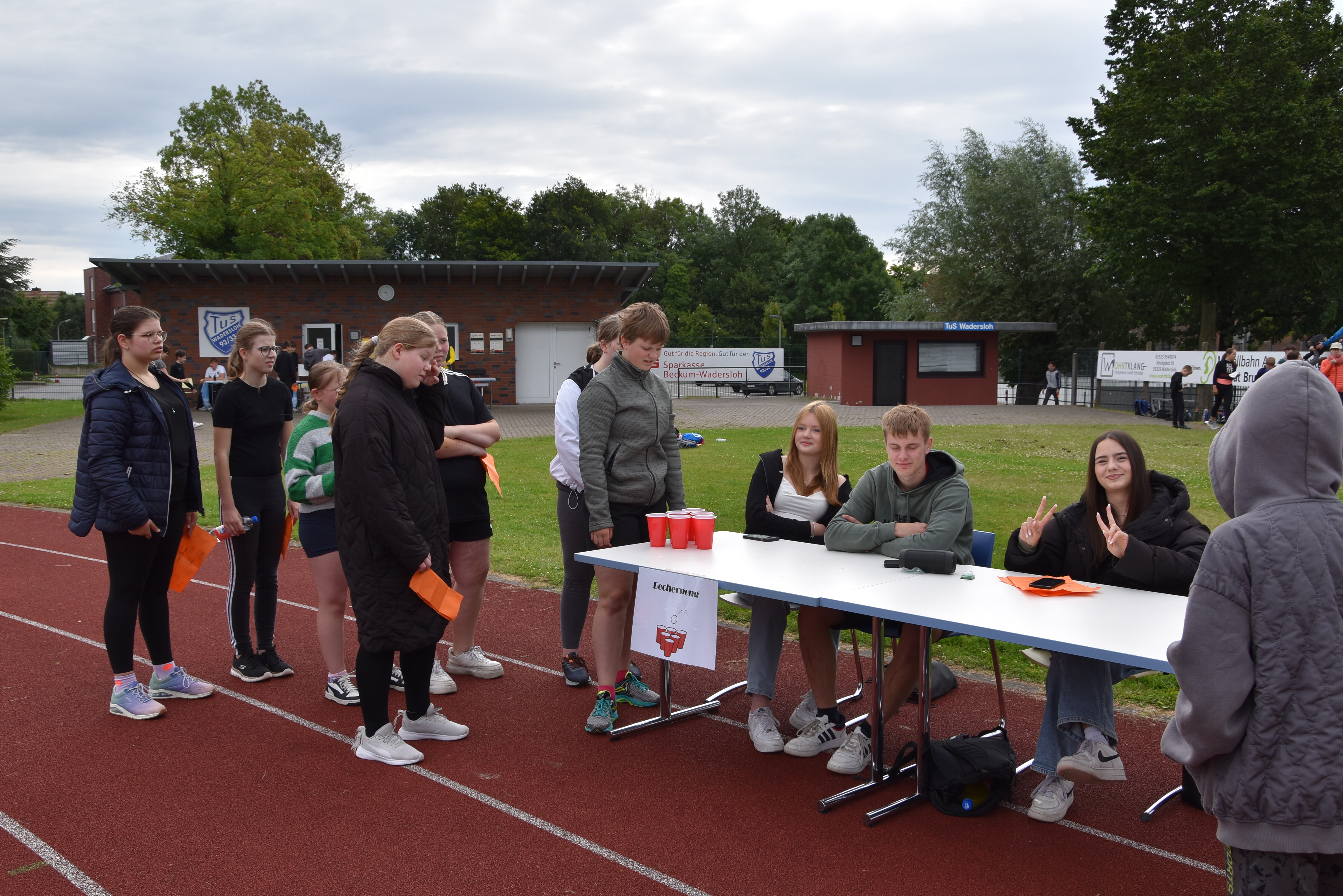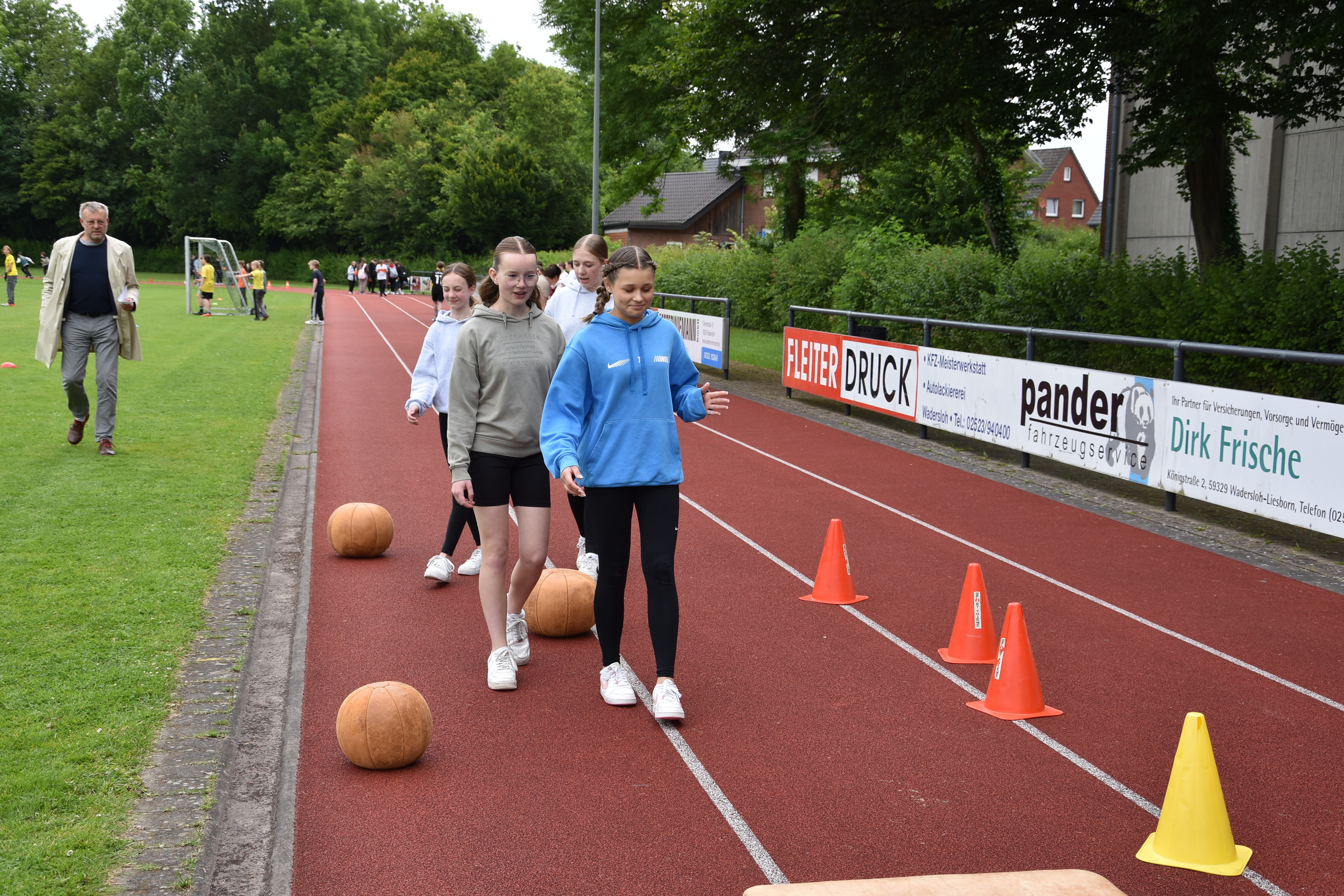 Parallel hatte die Abschluss-AG des 10.Jahrgangs auf der Tartanbahn Stationen aufgebaut, die die Schüler*Innen bestehen mussten.