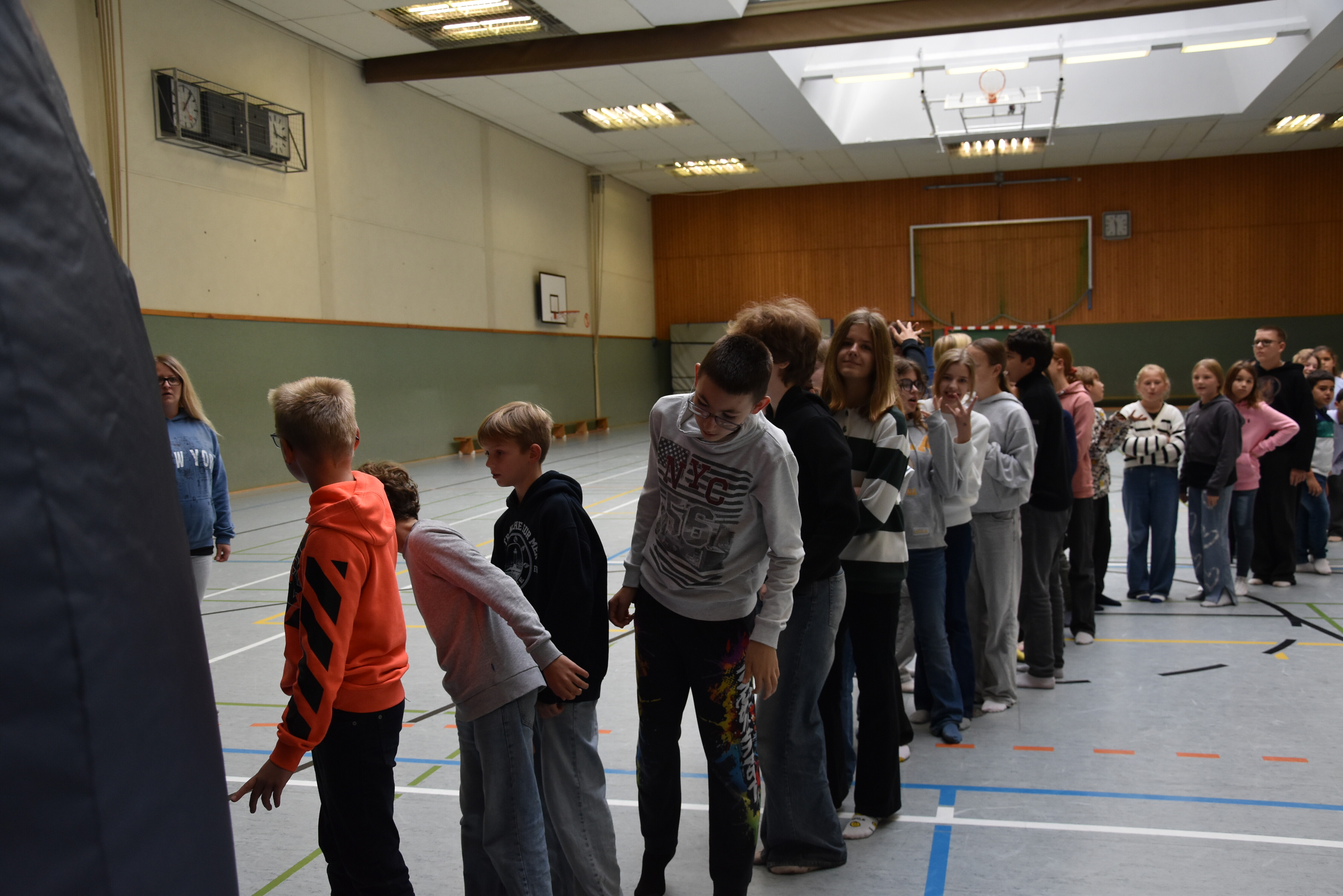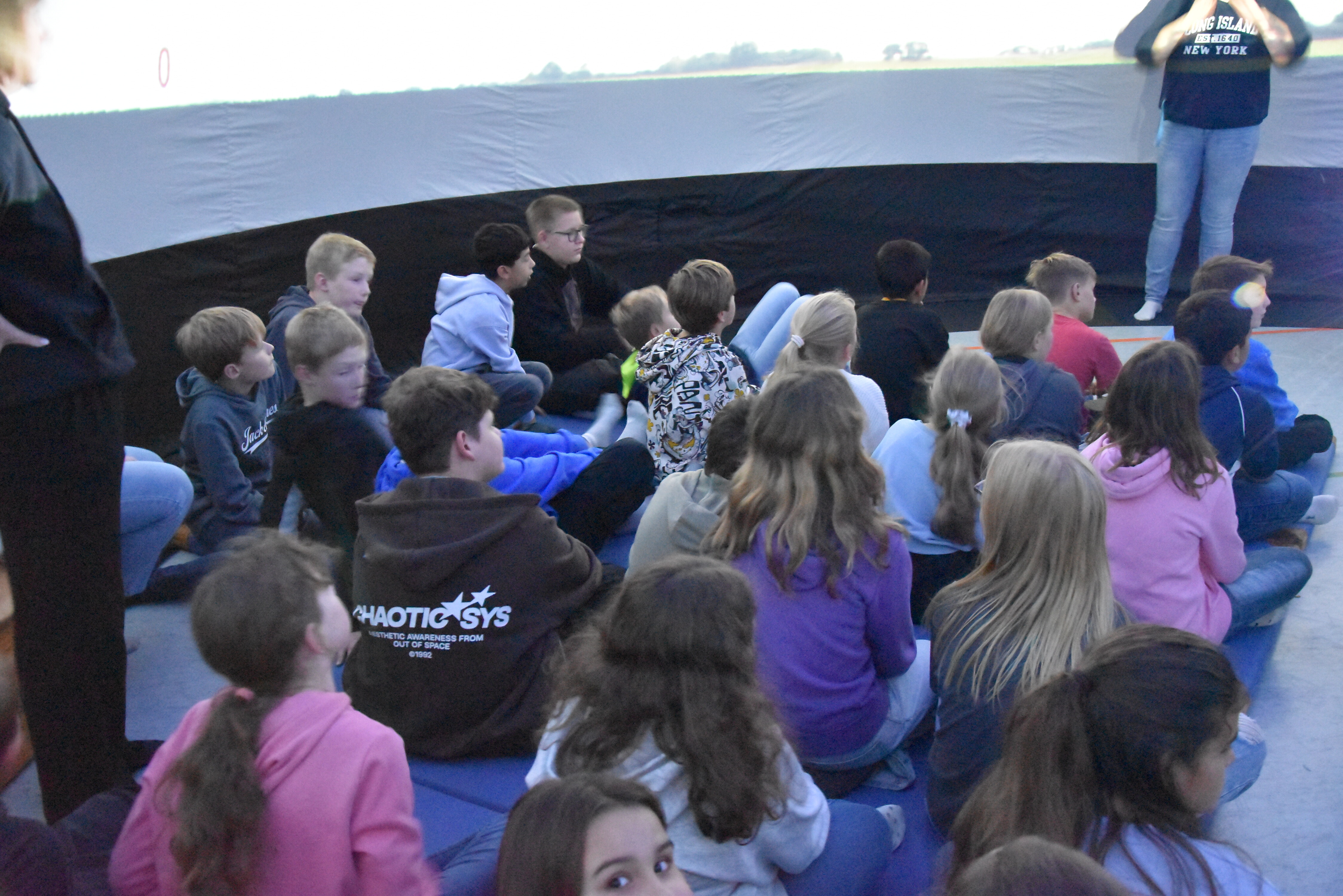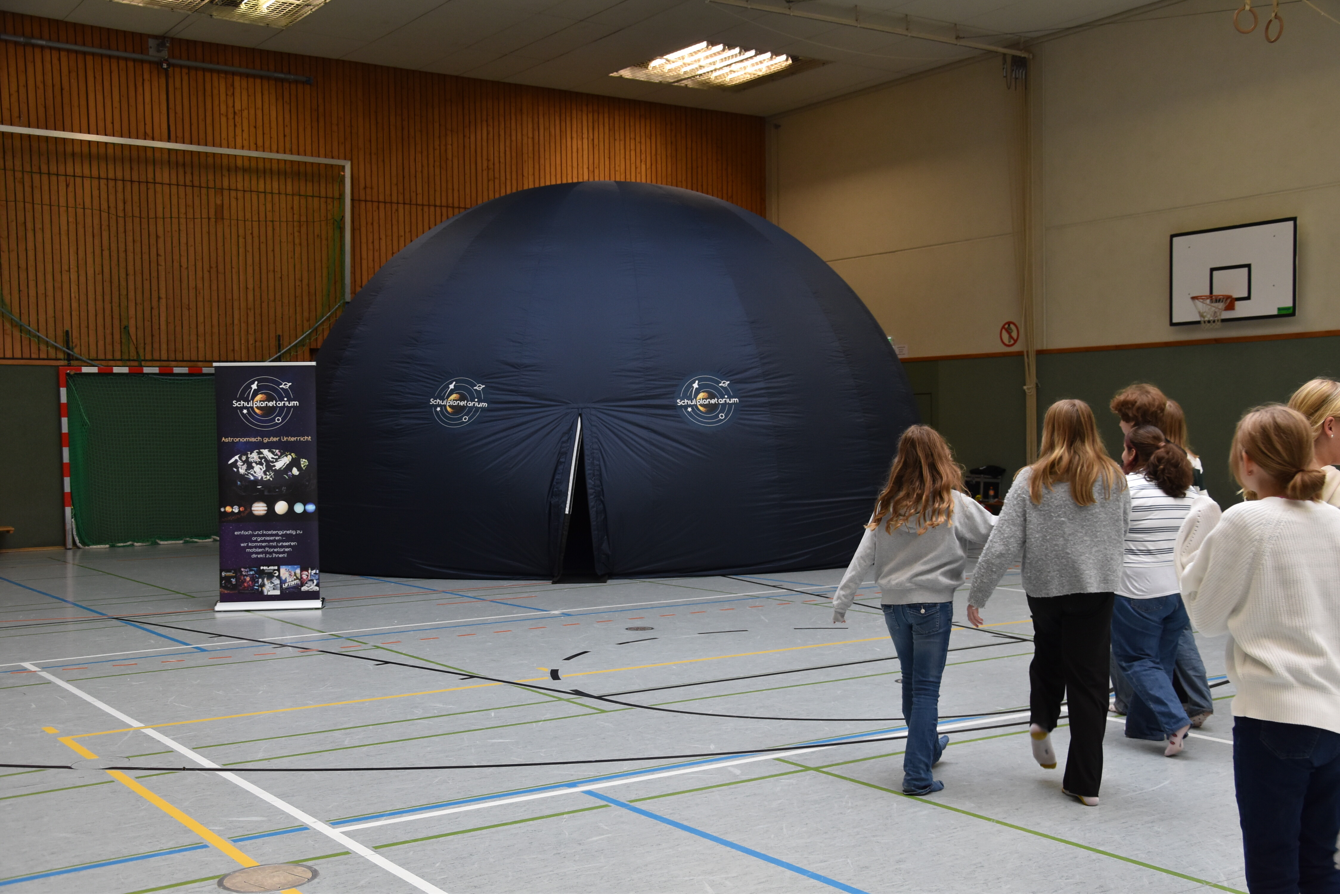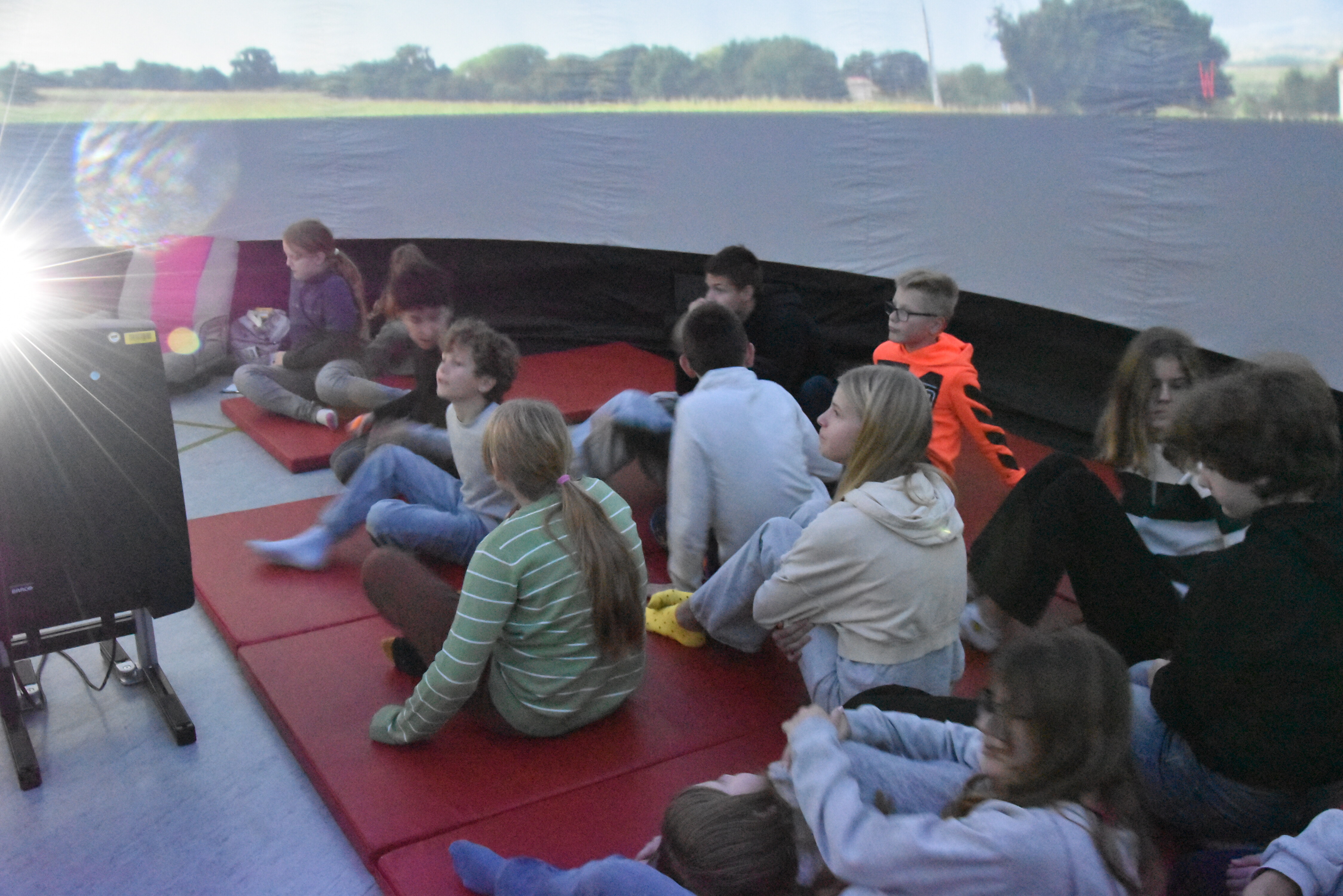 ... den durften unsere 5. und 6.Klassen erleben. In einem mobilen Planetarium reisten sie in einer Unterrichtsstunde durch unser Sonnensystem. Sonne, Mond, Venus, Jupiter... Aber auch schwarze Löcher waren Thema der Unterrichtsstunde der anderen Art.