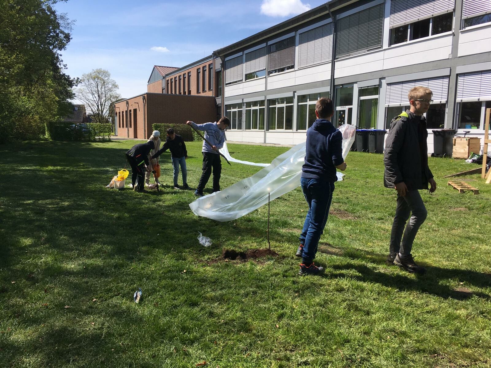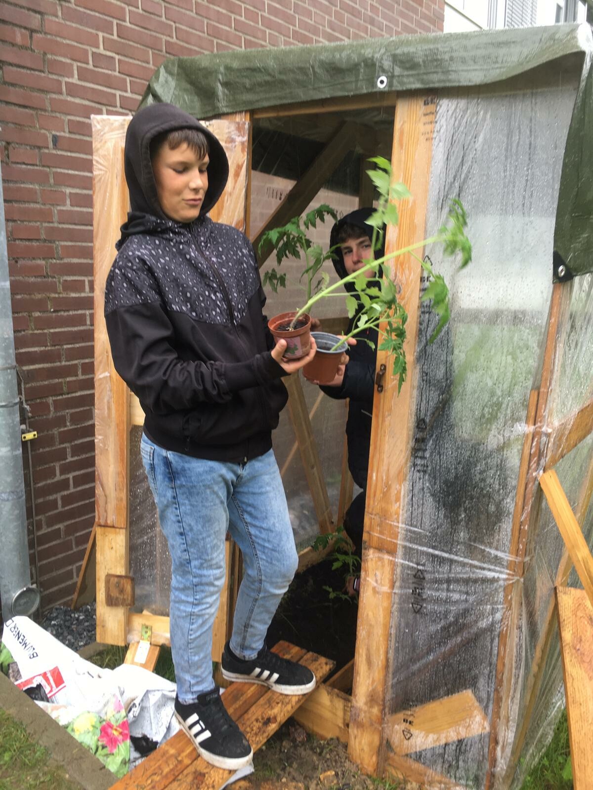 Da haben es die im Klassenzimmer vorgezogenen Tomatenpflanzen wirklich gut. Also alles läuft weiter und wir können auf eine gute Ernte hoffen.