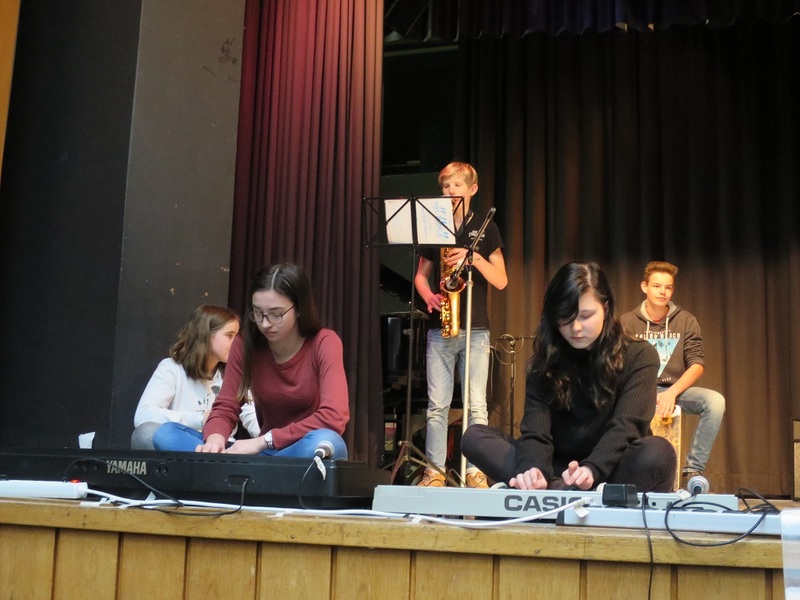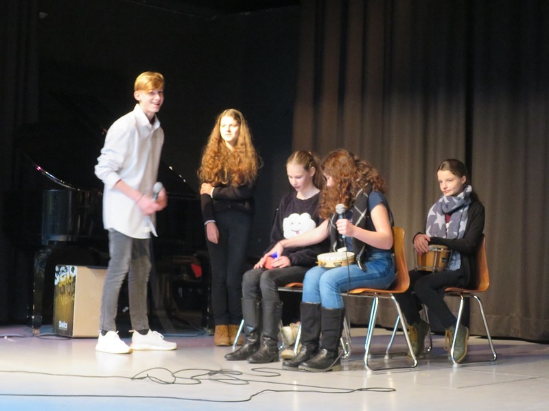 Zahlreiche Klassen und Kurse hatten Abwechslungsreiches einstudiert. Begeisterten die Fünftklässler mit dem schwungvoll vorgetragenen Lied „Che sara“, unterhielten die Musik-AG des Jahrgangs 8 mit „Hello Django“ und die Pausen-AG des Jahrgangs 9 mit einem Song von Justin Bieber. Auch Musiktheater stand diesmal auf dem Programm, einstudiert von Schülern der 7b. An einem solchen Nachmittag durfte aber natürlich auch nicht das Fach Darstellen&Gestalten fehlen: Die Kurse der Jahrgänge 7 und 8 zeigten mit ihren Darbietungen zum Thema „Mobbing“ und einer Tanzchoreografie, wie vielfältig dieses Hauptfach ist.