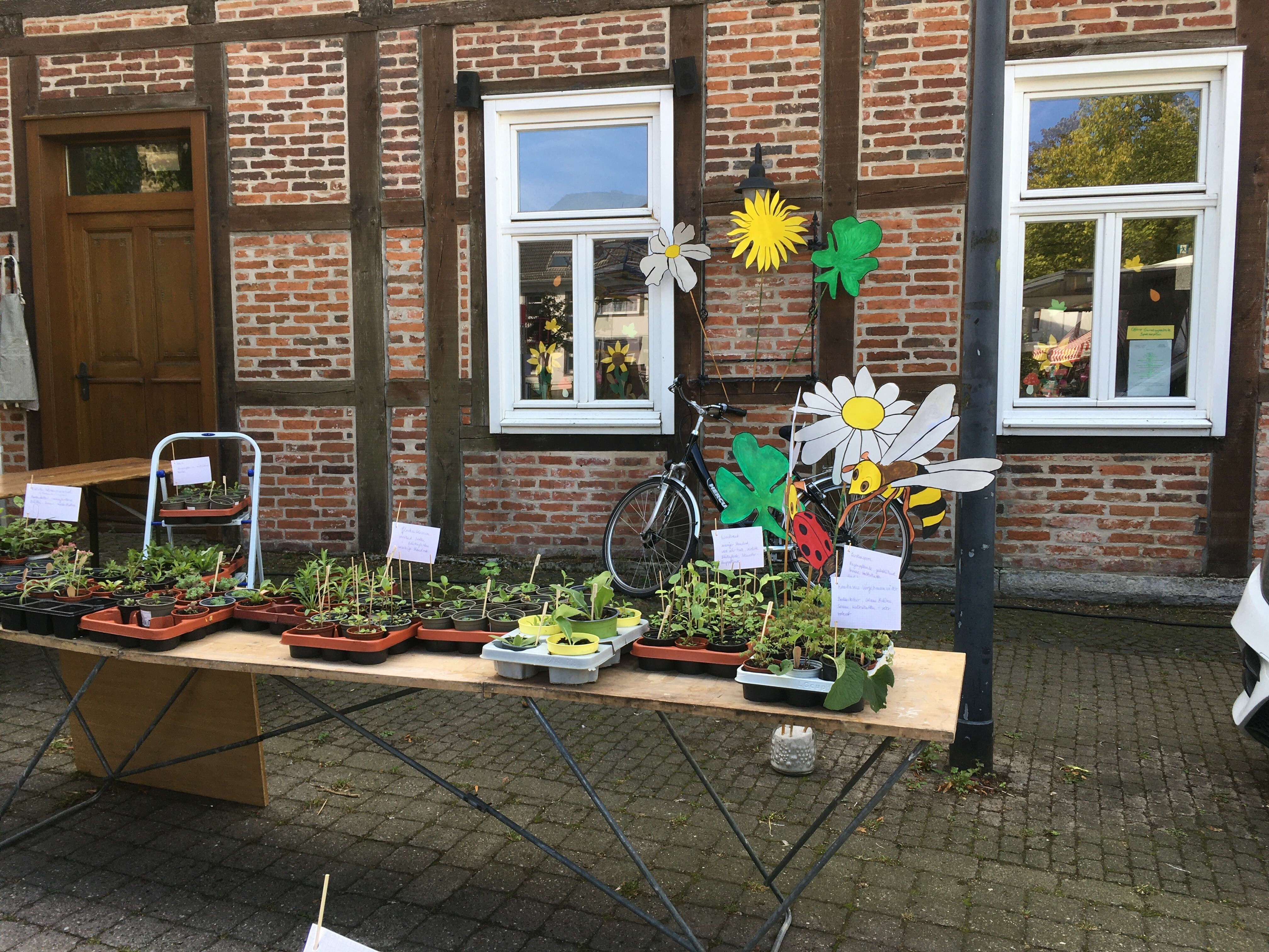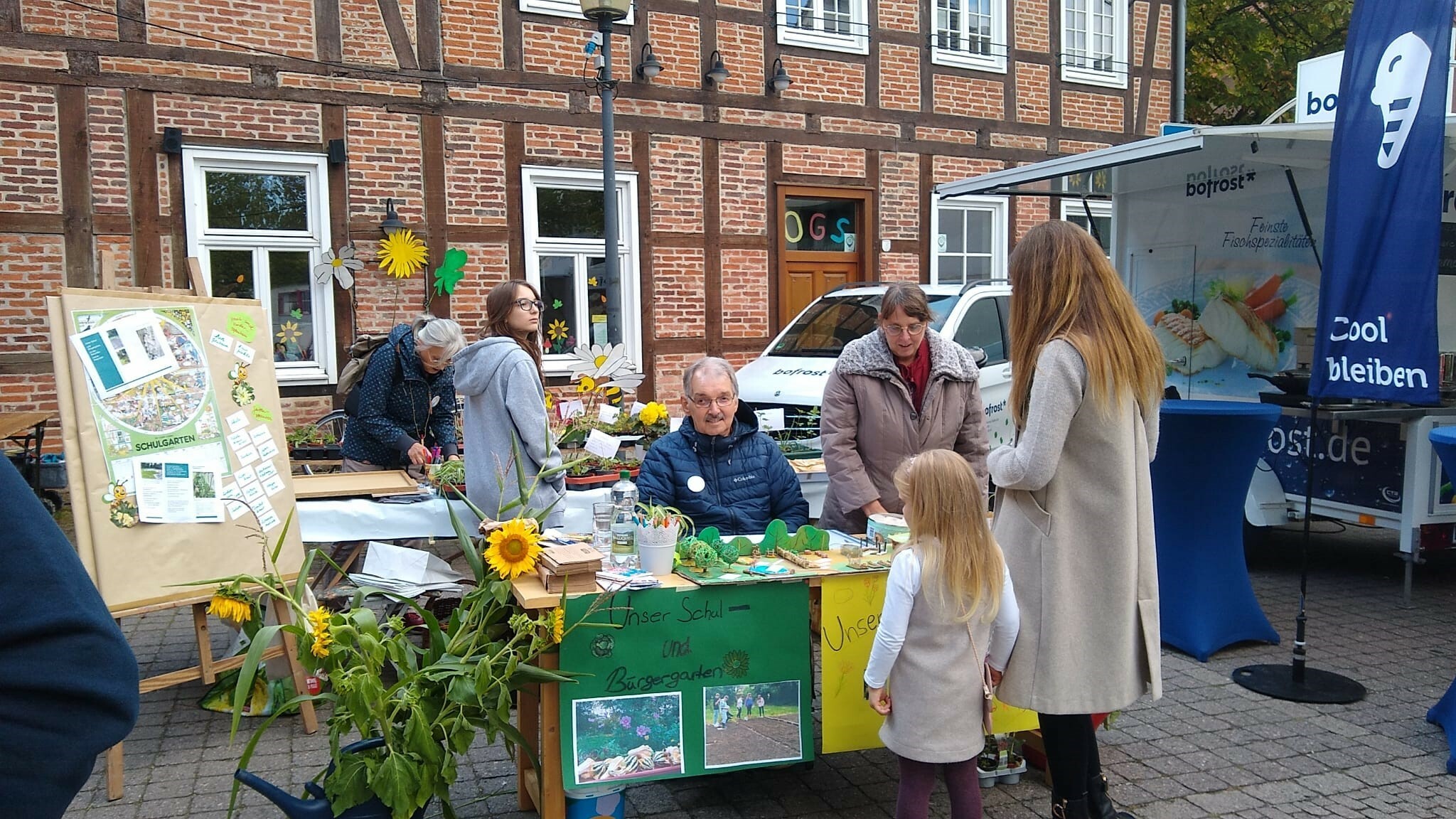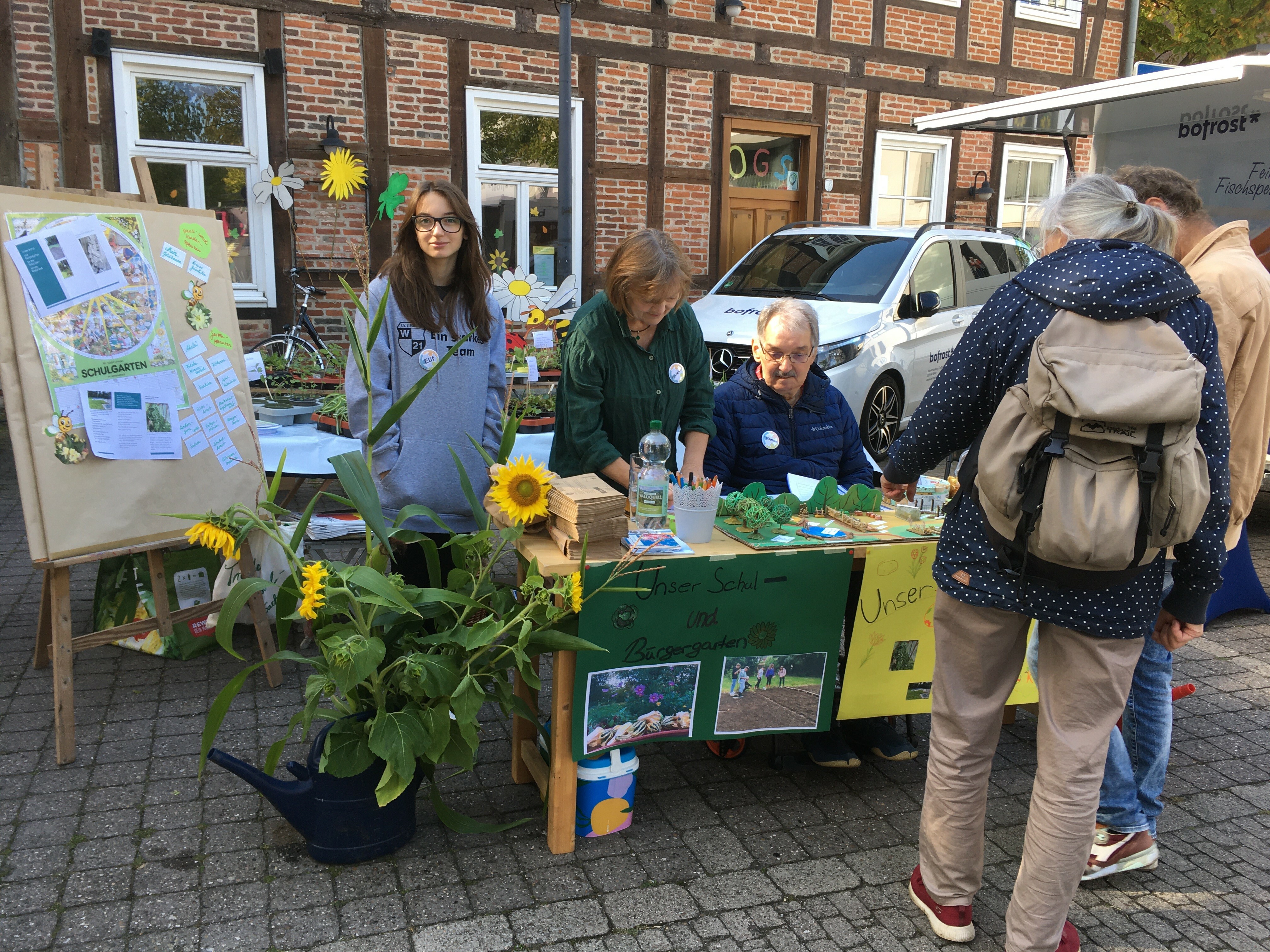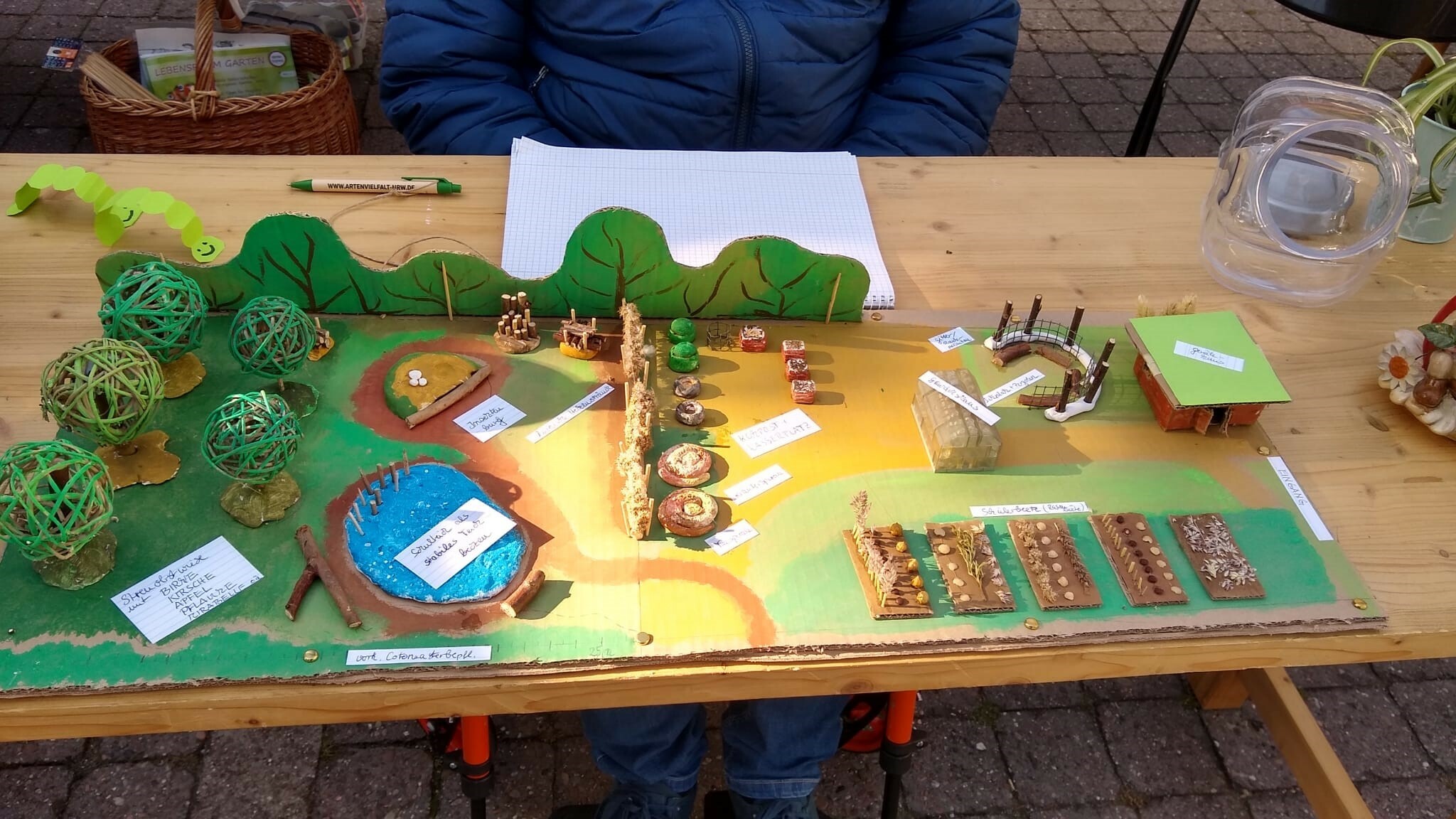 Ein großer Dank geht an die Bürgergruppe, mit Frau und Herr Felschen und Frau Spiegel für die enorme Arbeit, die geleistet wurde. Zusammen haben wir von 11-17.00 Uhr viele Gespräche geführt und sind auch auf großes Interesse gestoßen. Gegen eine freiwillige Spende konnten die Besucher kleine Pflanzen mitnehmen und dabei sind fast 150 Euro an Spenden für den Schulgarten zusammengekommen. Elif aus der 8c kümmerte sich besonders um die Kinder, die einige Spielaufgaben (Kugelbahn mit Magnetkugeln) lösen konnten, während die Erwachsenen das von Frau Spiegel gebastelte Modell des Schulgartens erklärt bekamen. Alles in allem ein schöner Tag, bei dem auch das Wetter mitspielte. Wir sind gespannt, wie sich das Projekt rund um den Schul- und Bürgergarten weiterentwickelt. Aktuell wurde mit dem Bau einer Gartenhütte begonnen, wie dem entsprechenden Beitrag zu entnehmen ist.