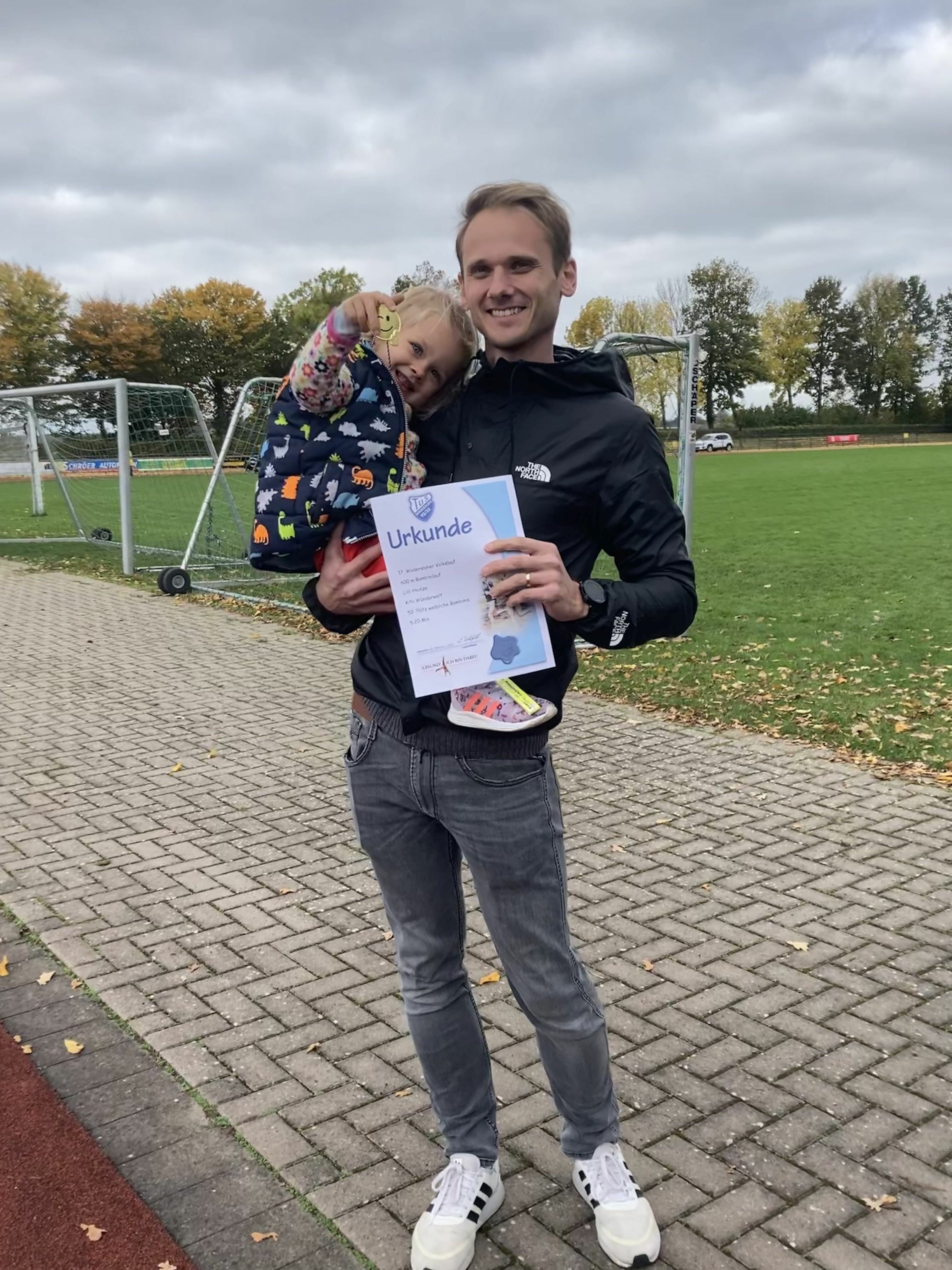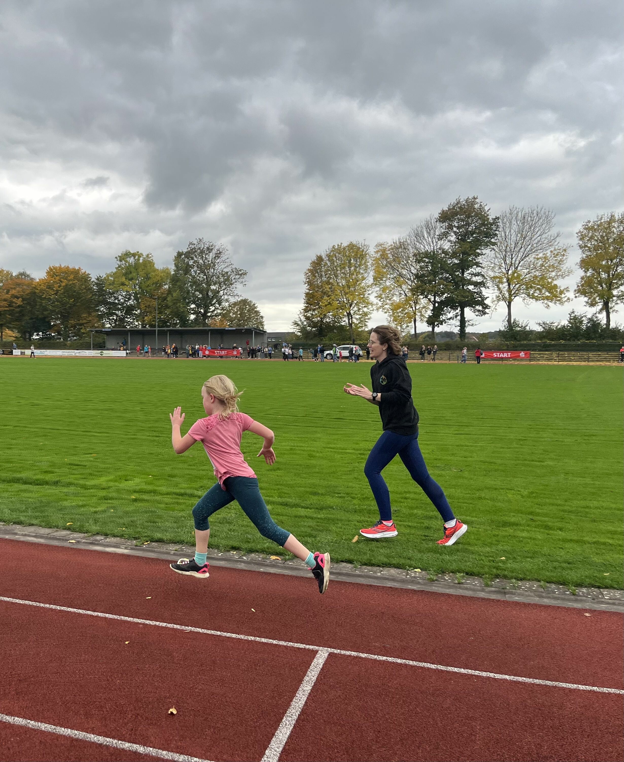 Herr Heinze und Frau Streffer motivierten schon ihre Jüngsten auf der Bambinistrecke und dem 1000m-Lauf, sodass der Laufnachwuchs gesichert ist.